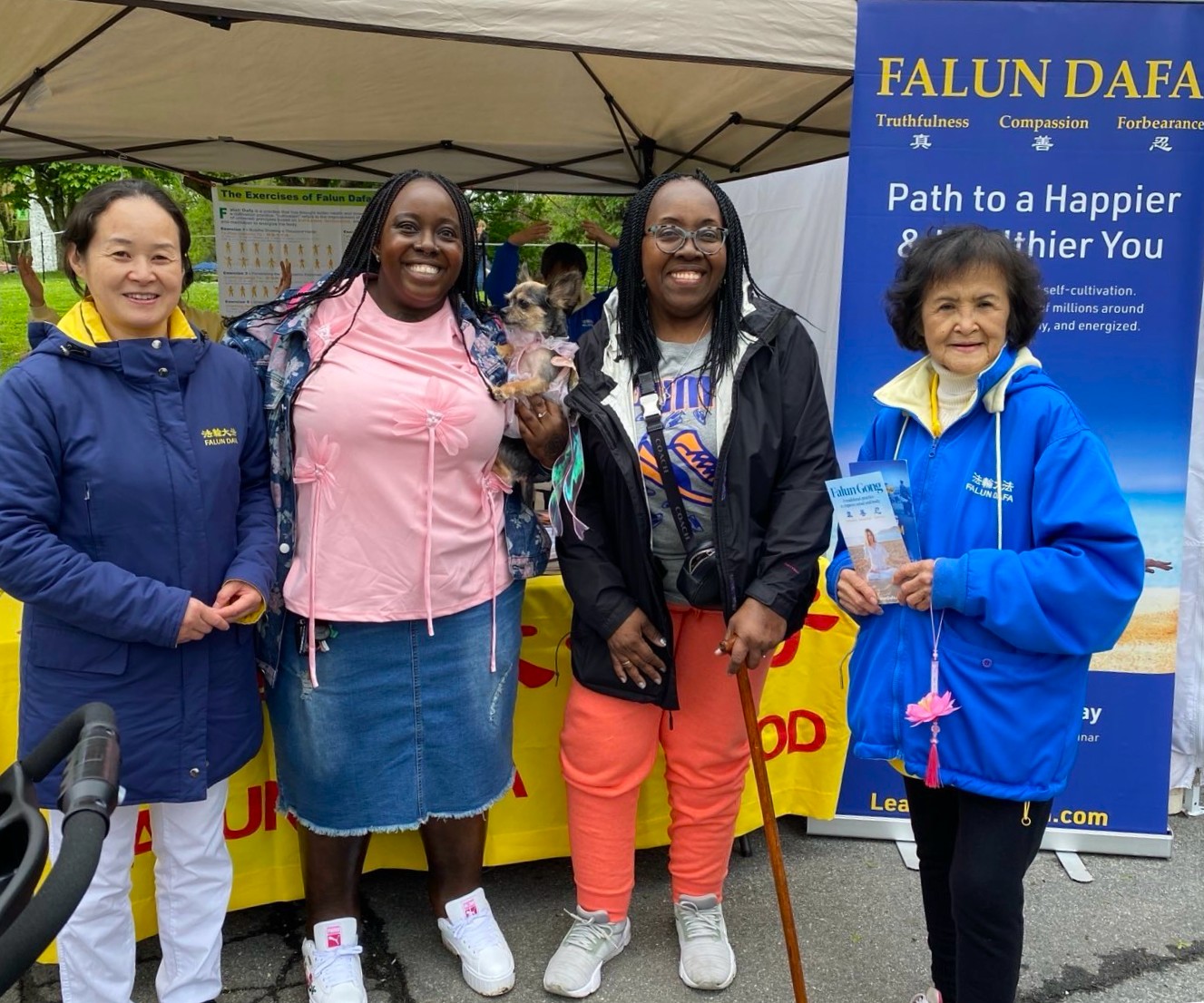 一对非裔母女对法轮功产生了浓厚兴趣,她们感慨地说:“真、善、忍充满了力量!”还有一位女士,在听完学员对法轮功的介绍后,感动得热泪盈眶,说:“你们真是一群善良的人。”离开前,她给了学员一个大大的拥抱。