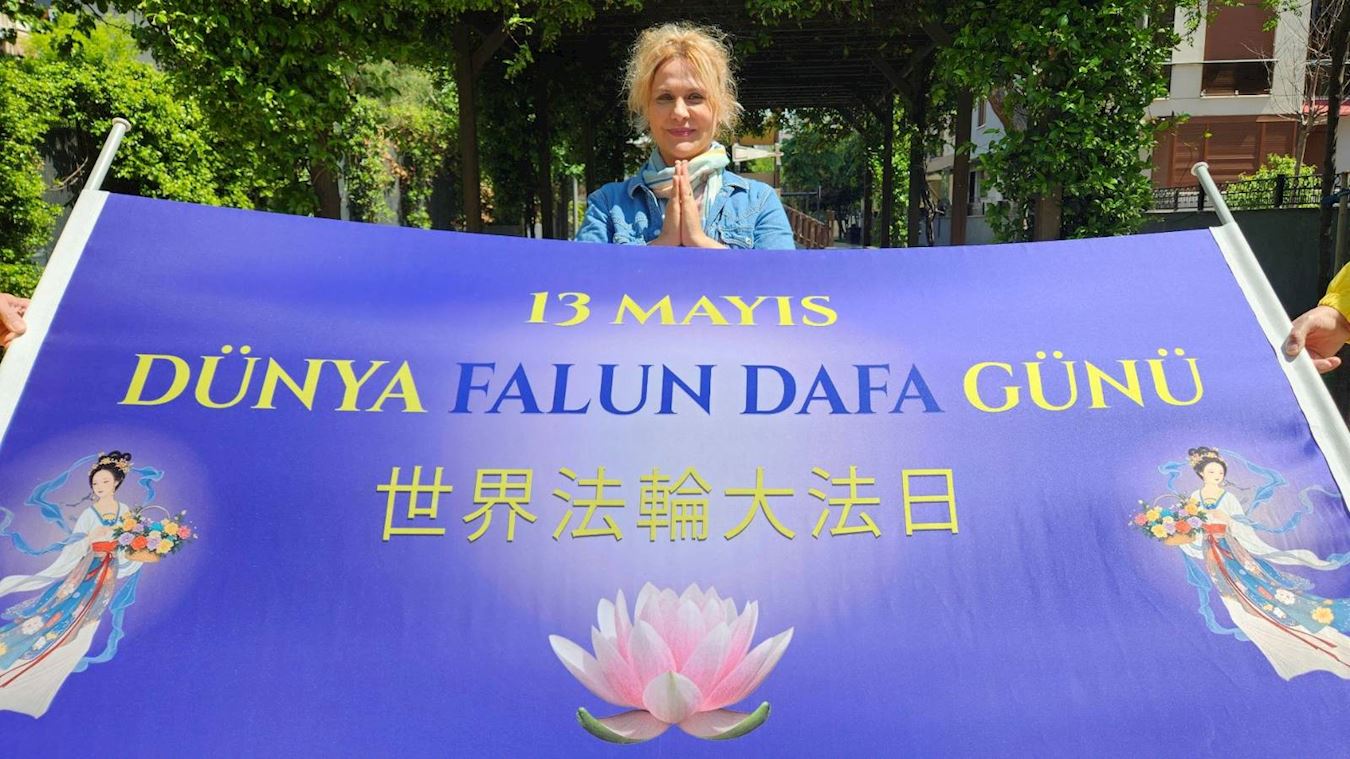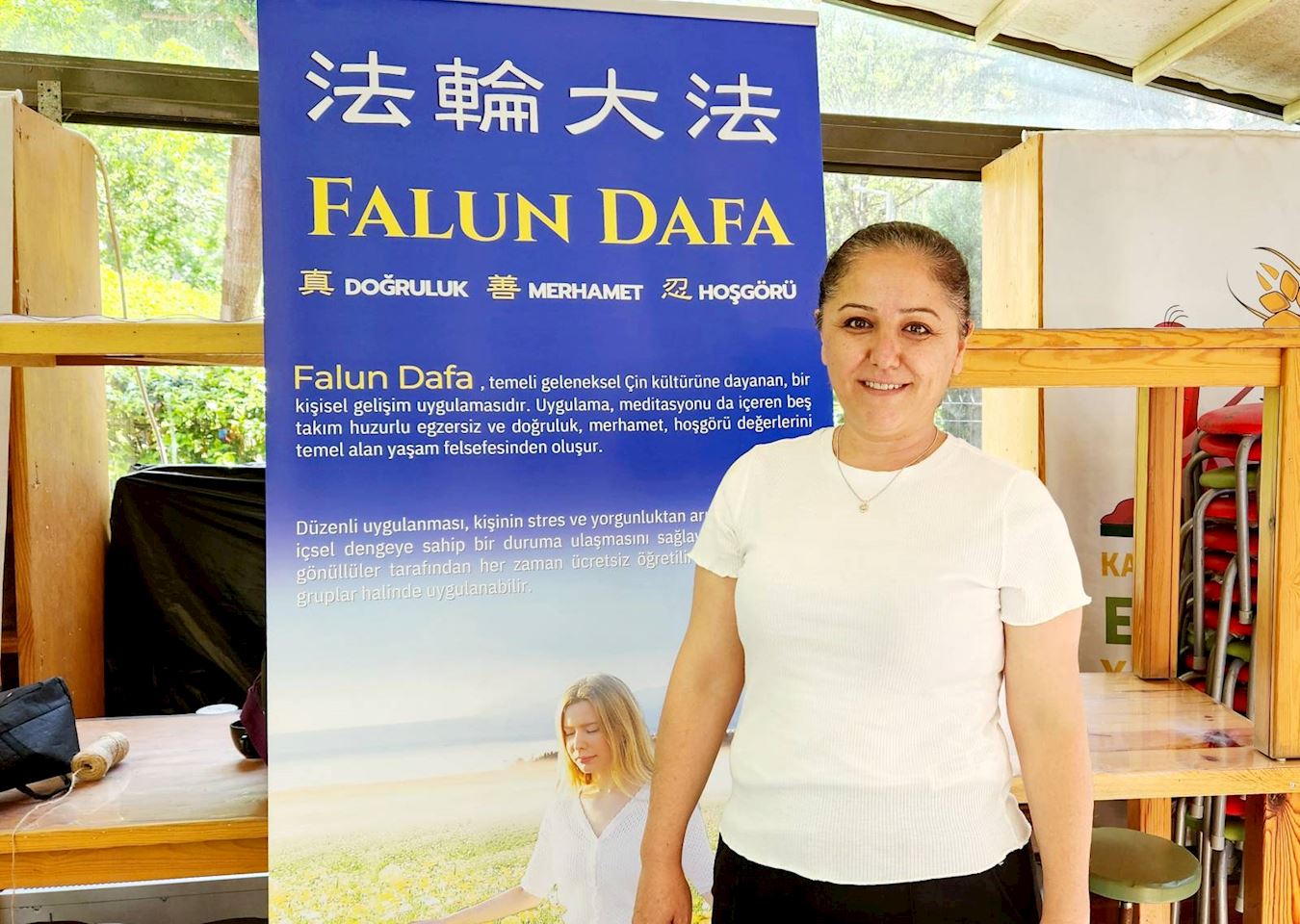 语言治疗师布瑟·居内欣(Buse Güneşsin)说:“我刚刚接触法轮大法。在我们一起炼功的这一小时里,我非常惊讶地发现,昨晚开始背部的疼痛有了明显好转,让我印象深刻。”