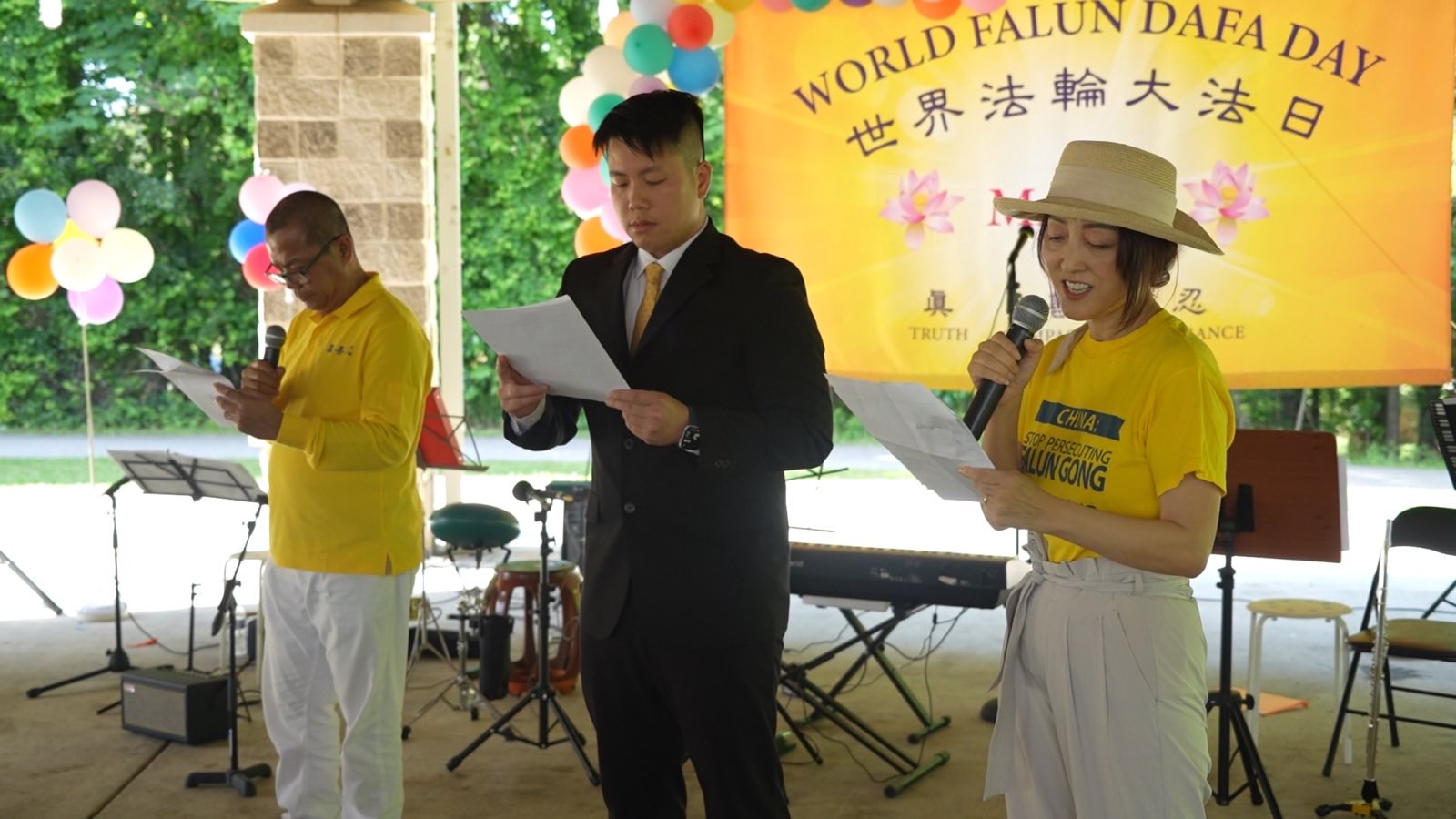 庆祝会上,几位学员分享了他们各自修炼的体会。华人学员刘先生从二十多岁开始修炼,至今已经将近三十年。修炼前,他时常感受到胸闷以及四肢无力,然而开始炼功大约才三个月,健康就大有改善,走路轻快到甚至有飘飘然的感觉,上楼与爬山都体力十足。然而他提到,法轮大法还特别要求炼功人要修心,提高道德并做一个好人。从这方面来说,他原来在家中独断专行,修炼后开始对家人态度转为包容与理解,家庭关系变得十分融洽。