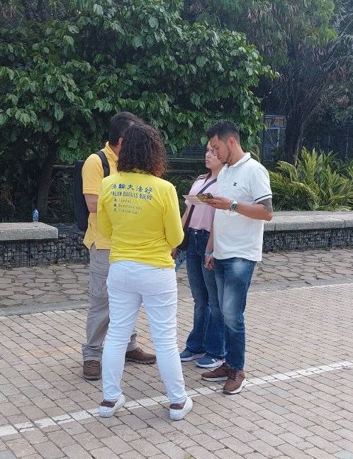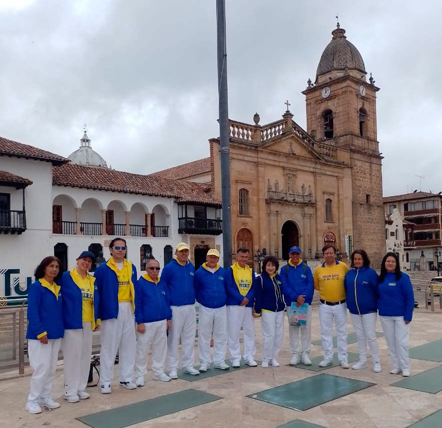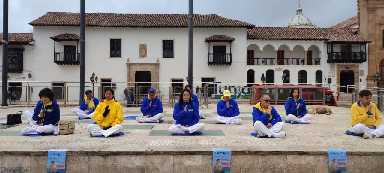 二零二五年五月十日,法轮功学员在通哈市中心的玻利瓦尔广场举行集体炼功,并向现场游客介绍法轮大法。五月十三日,法轮功学员在波哥大查皮内罗镇(Chapinero)的卢尔德教堂(Church of Lourdes)旁边举行集体炼功,并向民众分发真相资料。