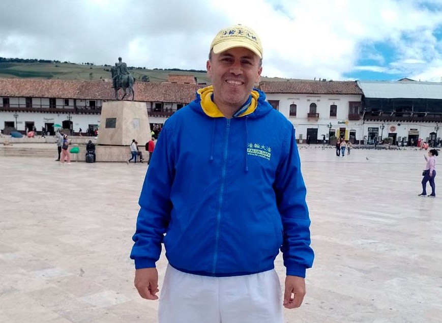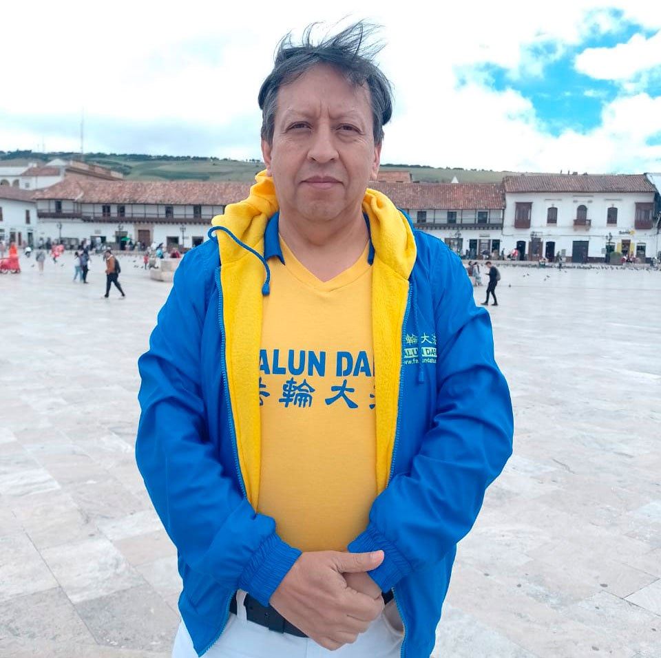 十八年前,毛里西奥·梅迪纳·塔拉索纳(Mauricio Medina Tarazona)在公园看到一群人在炼功,于是也加入其中,在读完《法轮功》后,他的身心发生了巨变,家庭和社会关系也好了。