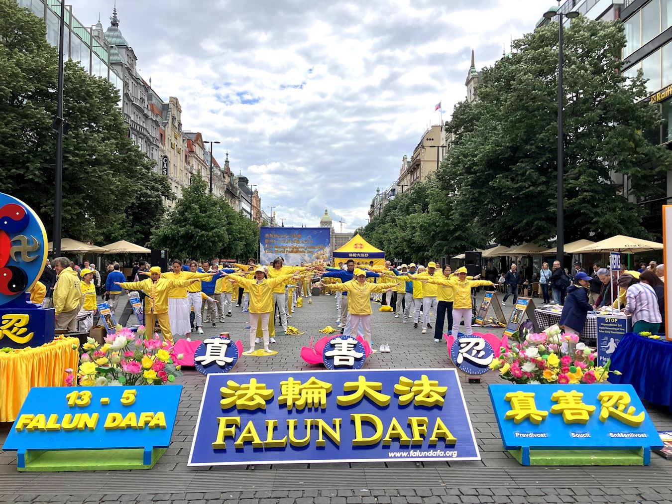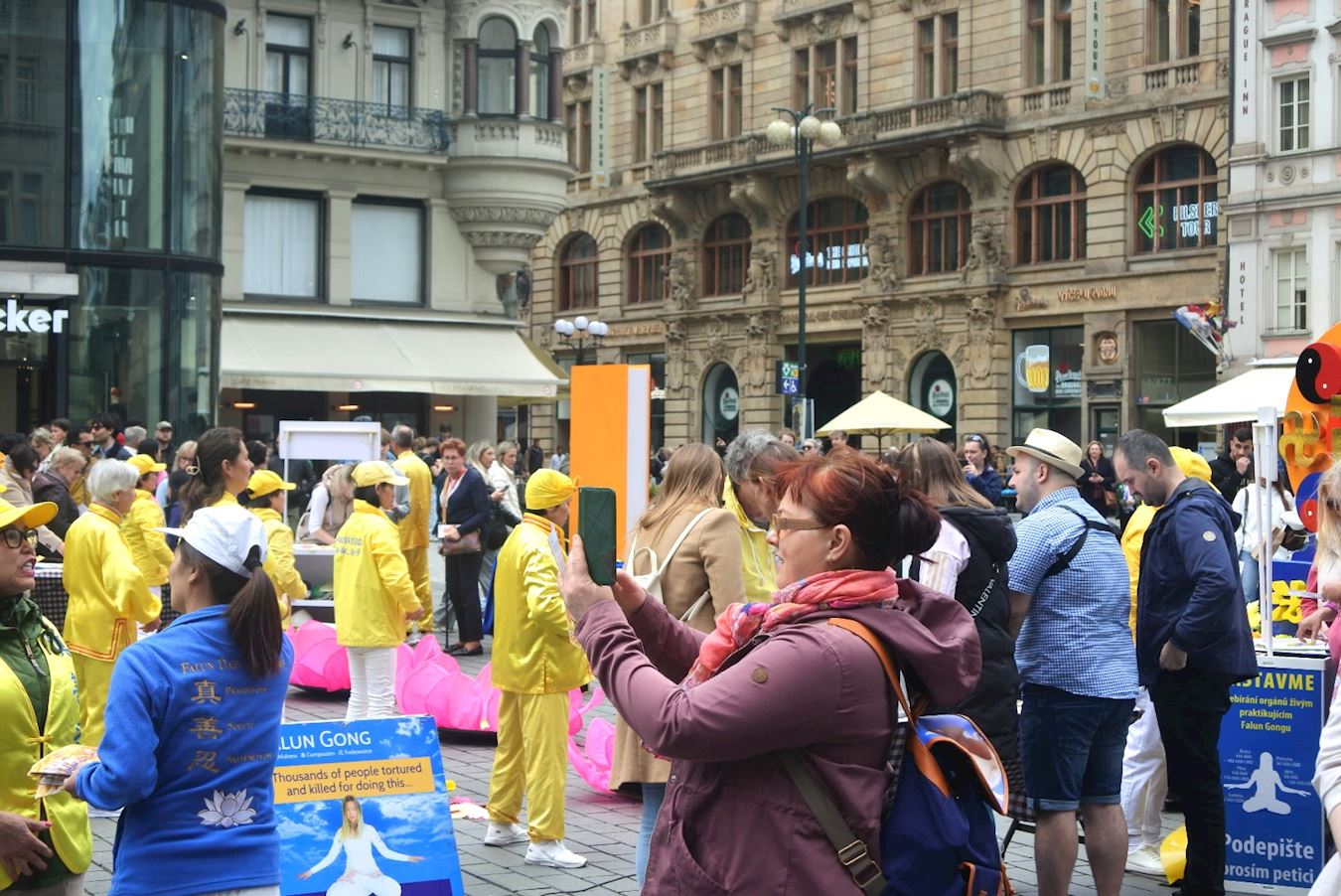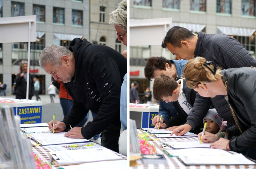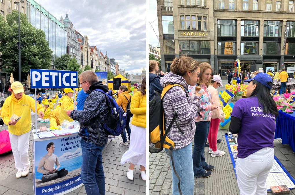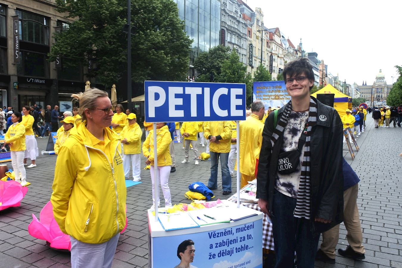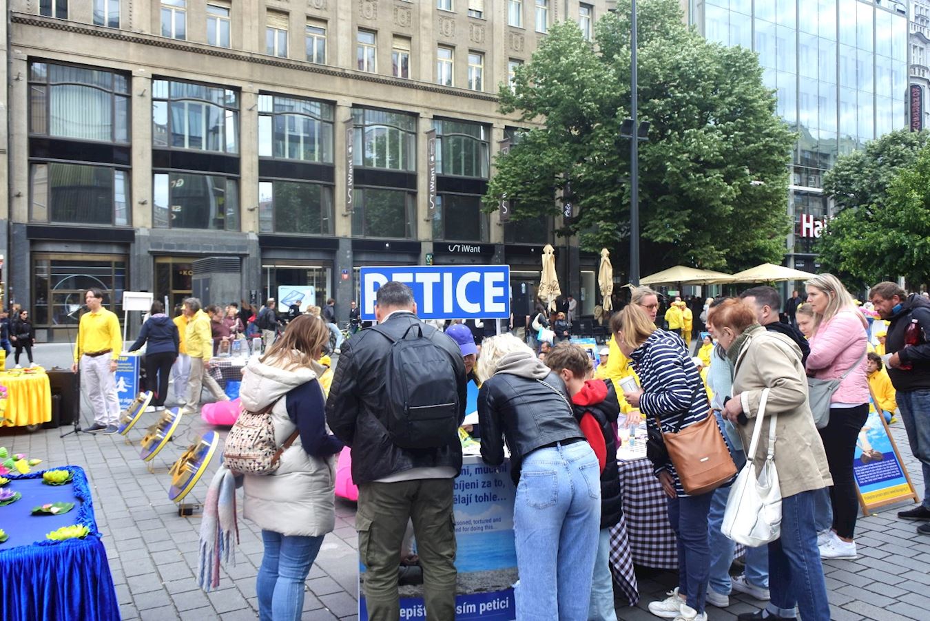 瓦茨拉夫广场是布拉格最繁忙街区之一,不仅本地人常常经过,也有来自捷克各地及世界各地的游客。展台刚搭好,便有民众前来了解详情并签署支持反迫害。这种情况持续了一整天。