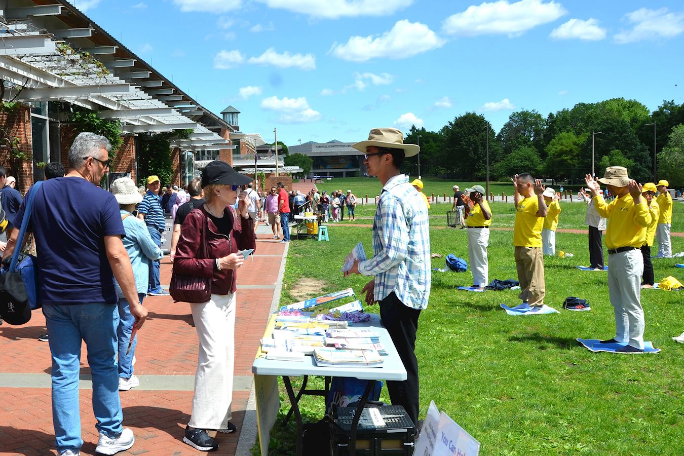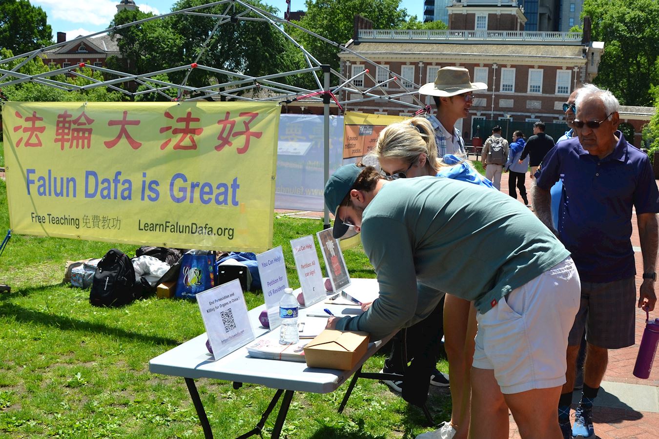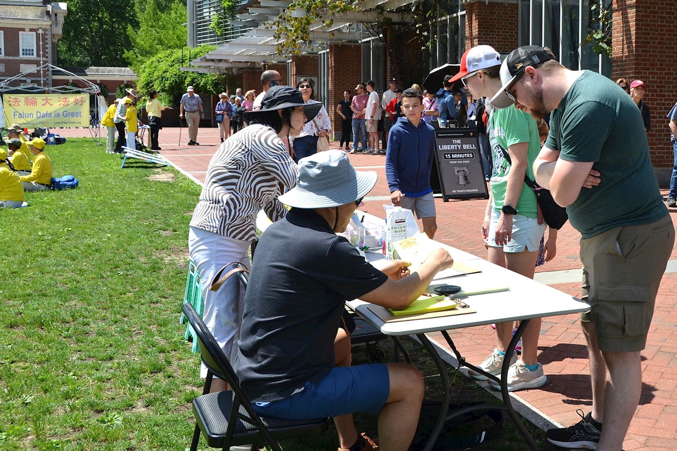 当天的庆祝集会吸引了许多游客了解法轮功,很多人表示敬佩法轮功学员对信仰的坚持,并在呼吁结束中共迫害法轮功的请愿书上签名。