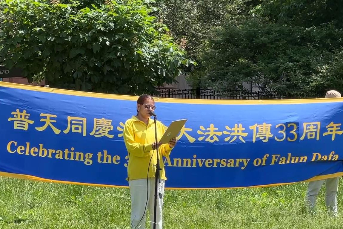 “修炼法轮大法之后,我的家庭更和睦,工作中也能应对压力而不烦躁。”印度裔大法弟子阿努·达玛(Anu Damo)在庆祝活动上发言说。