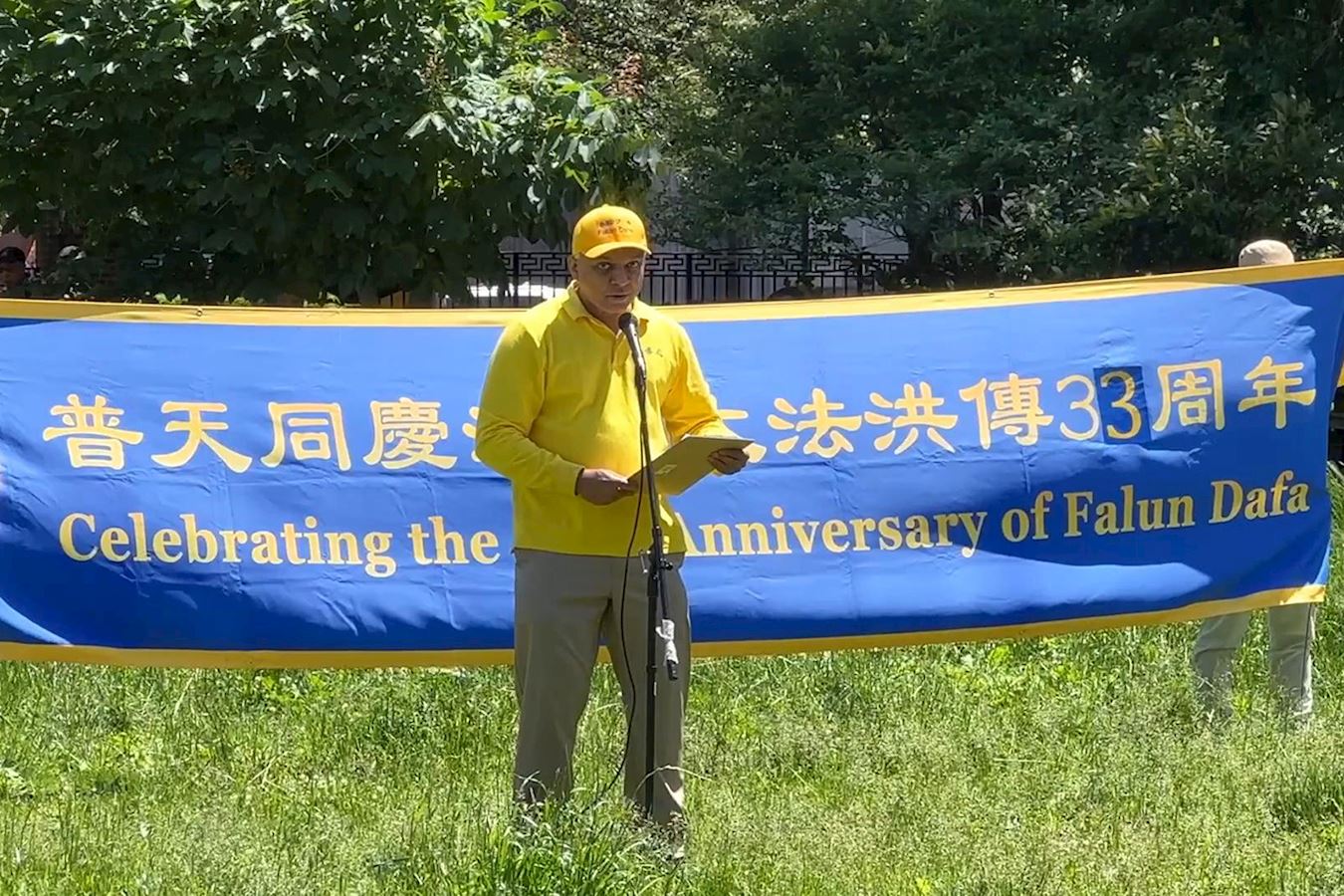 ![]() 图10:软件工程师桑托什(Santosh)在集会上分享自己修炼法轮功的体会。 |