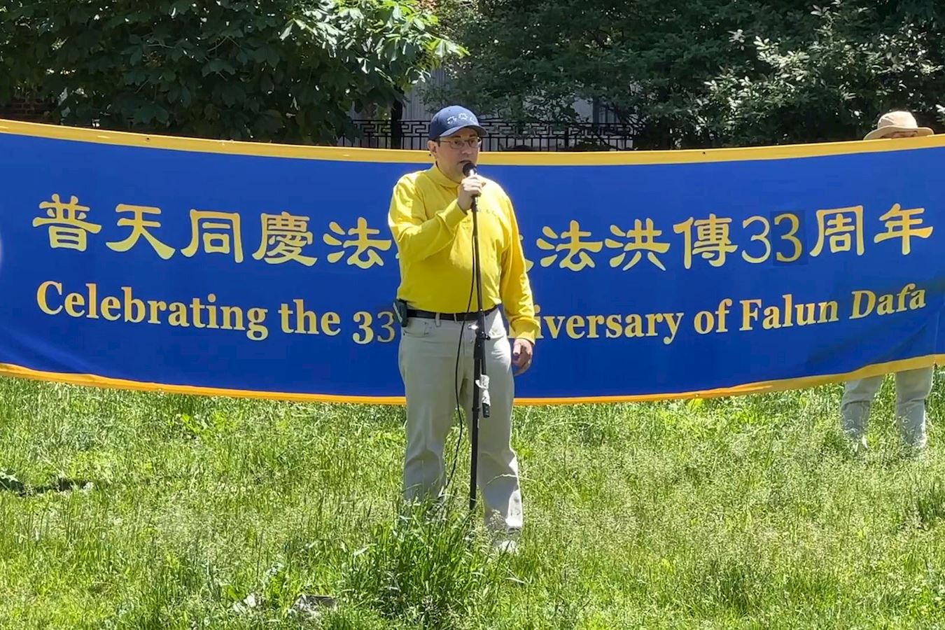 ![]() 图11:IT技术经理亚历克斯(Alex)在集会上分享自己修炼法轮功的体会。 |