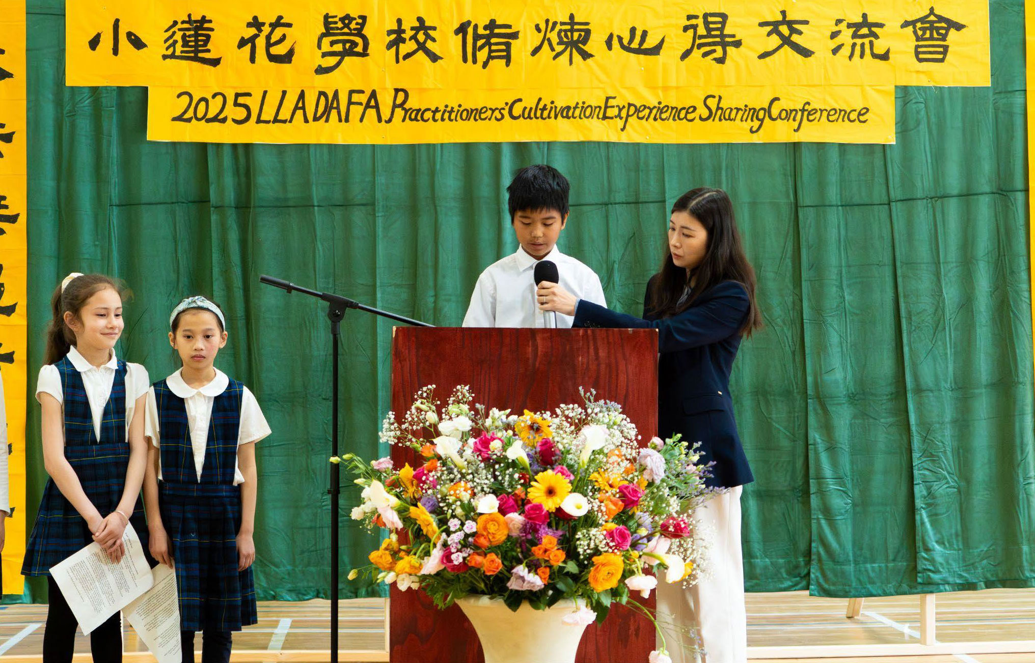 ![]() 图1:大法小弟子在“二零二五年小莲花学校修炼心得交流会”上发言。 |