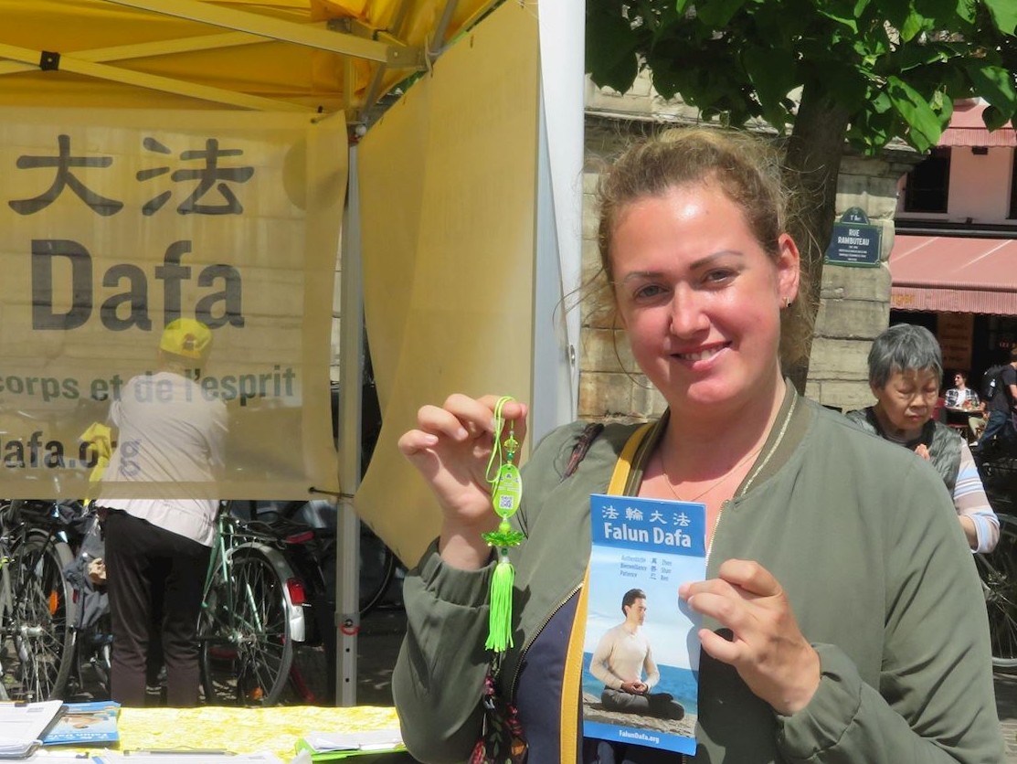 当知道法轮功免费教功,不收费时,阿芒蒂娜很感触。她很钦佩法轮功学员举办的活动,“好东西要大家一起分享,这对社会、对人类都有益”!