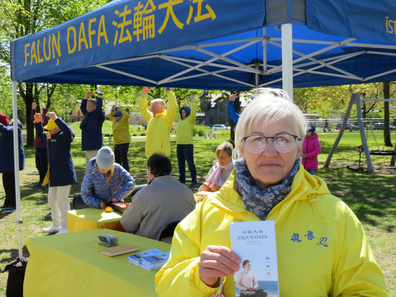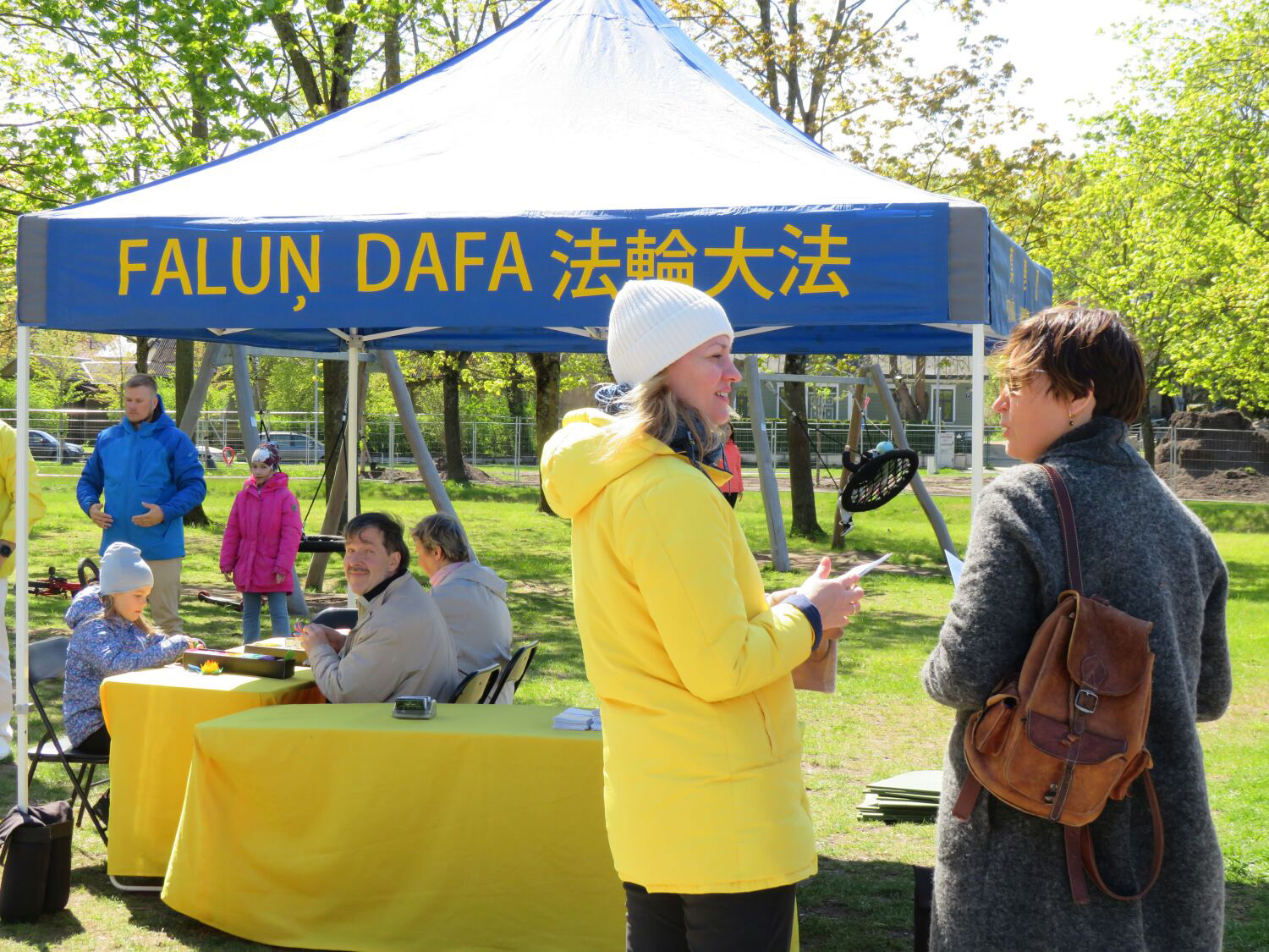 来自里加的本地居民达茨(Dace)在活动中了解了法轮大法后说:“这对健康有益!”她尤其被真、善、忍的原则所震撼,她说:“如今很多人迷失在现实中,他们生活在虚拟世界里;而耐心可以成就很多,不是拳头砸桌子,而是用平静和坚持,”她希望下次尝试炼功,并祝福学员们好运。