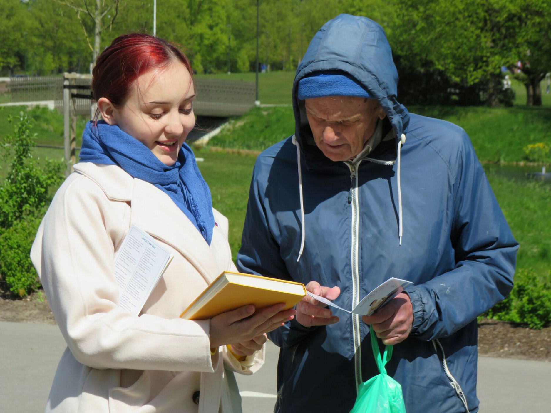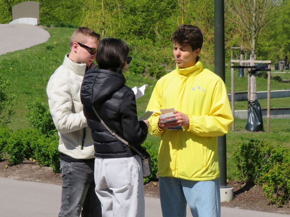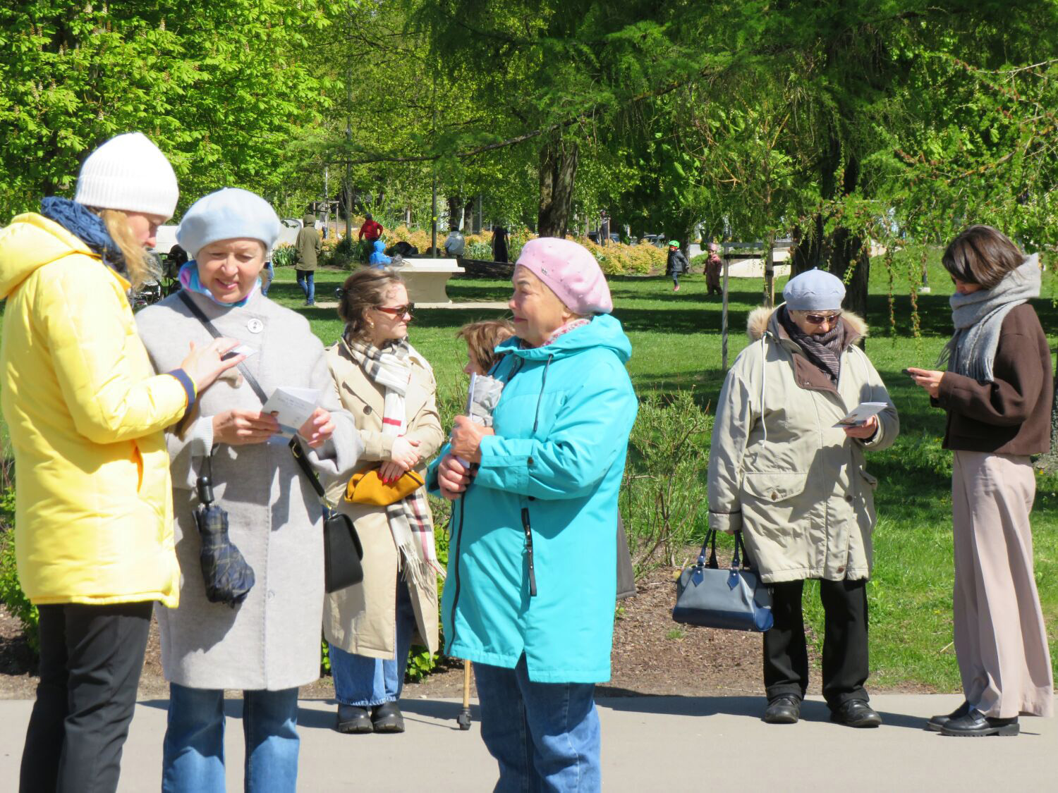 祖孙一家三代——女儿、母亲和祖母当天在公园散步时偶遇法轮功学员,母亲说:“我们经常在中共大使馆附近看到你们,你们总是那么平静和友善。”她们也表达了想要学习功法的兴趣。