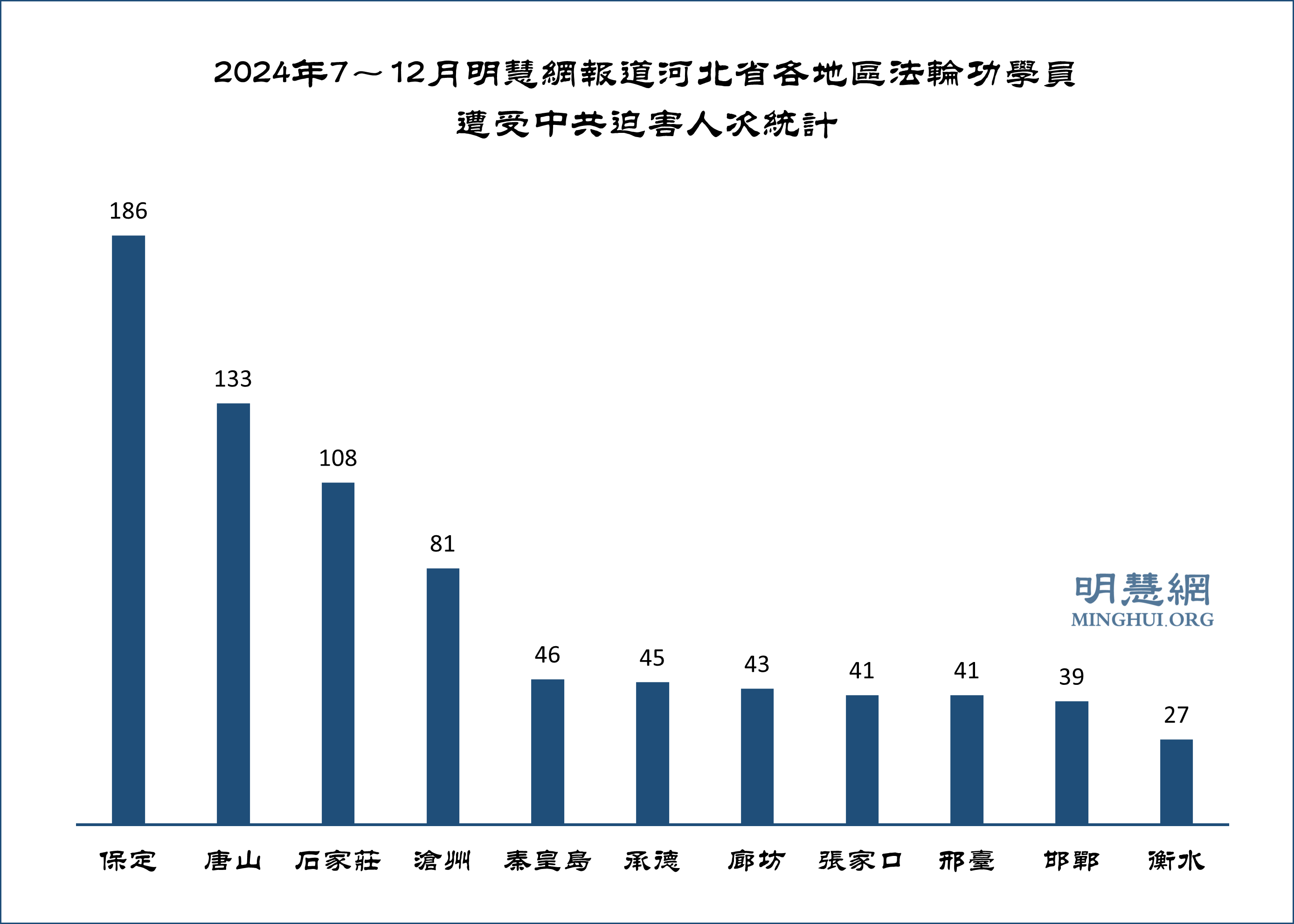 ![]() 图12024年7~12月明慧网报道河北省各地区法轮功学员遭受中共迫害人次统计 |