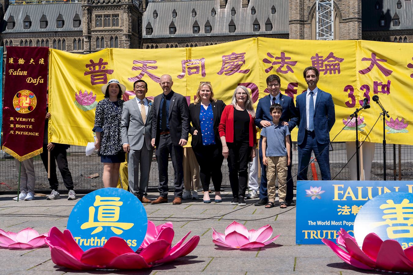 到场支持并演讲的国会议员不仅有长期支持法轮功的资深议员,也有刚刚当选的议员,他们是思格若(Judy Sgro)、兰茨曼(Melissa Lantsman)、拉莫勒克斯(Kevin Lamoureux)、吉尼斯(Garnett Genuis)、瑞德(Scott Reid)、比赞(James Bezan)、库珀(Michael Cooper)、穆伊斯(Dan Muys)、科克兰(Rhonda Kirkland)、瓦甘托尔(Cathay Wagantall)、马国基(Costas Menegakis)、贝克(Yvan Baker)、古列尔明(Michael Guglielmin)、万登贝尔德(Anita Vandenbeld);首都加蒂诺市议员度甘(Mike Duggan)十五位政要赶到现场演讲表达支持。