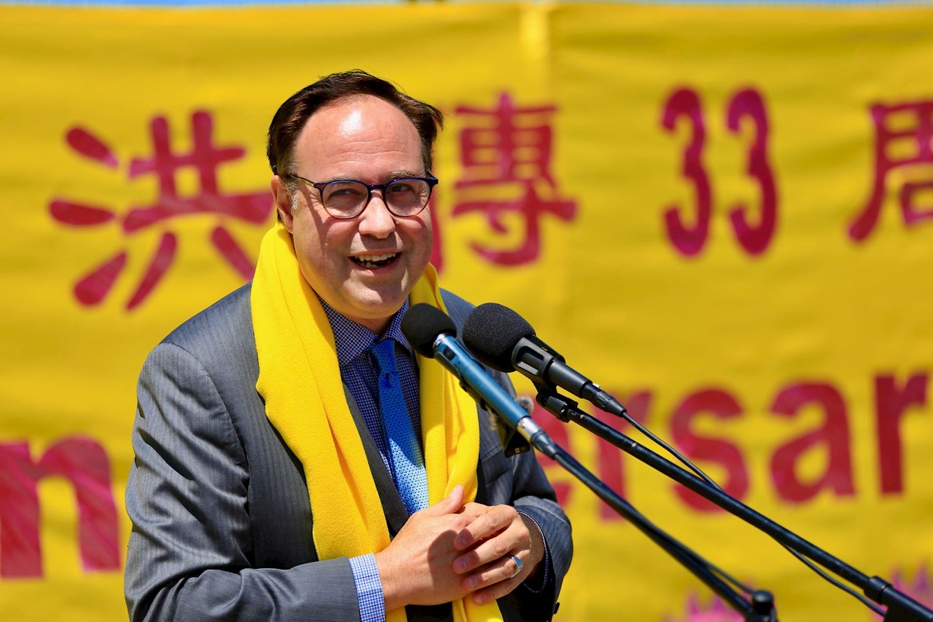 他表示,法轮功是遭受了中共最残酷迫害的和平团体。“你们来到这里展示和平与善意,同时也提醒我们必须捍卫真相与正义,反对中共对法轮大法的迫害,反对中共在国内外对其他群体的迫害。”他说,“我们必须凝聚在一起,捍卫真相与正义,反抗中共对世界和平和人类尊严的胁迫。”