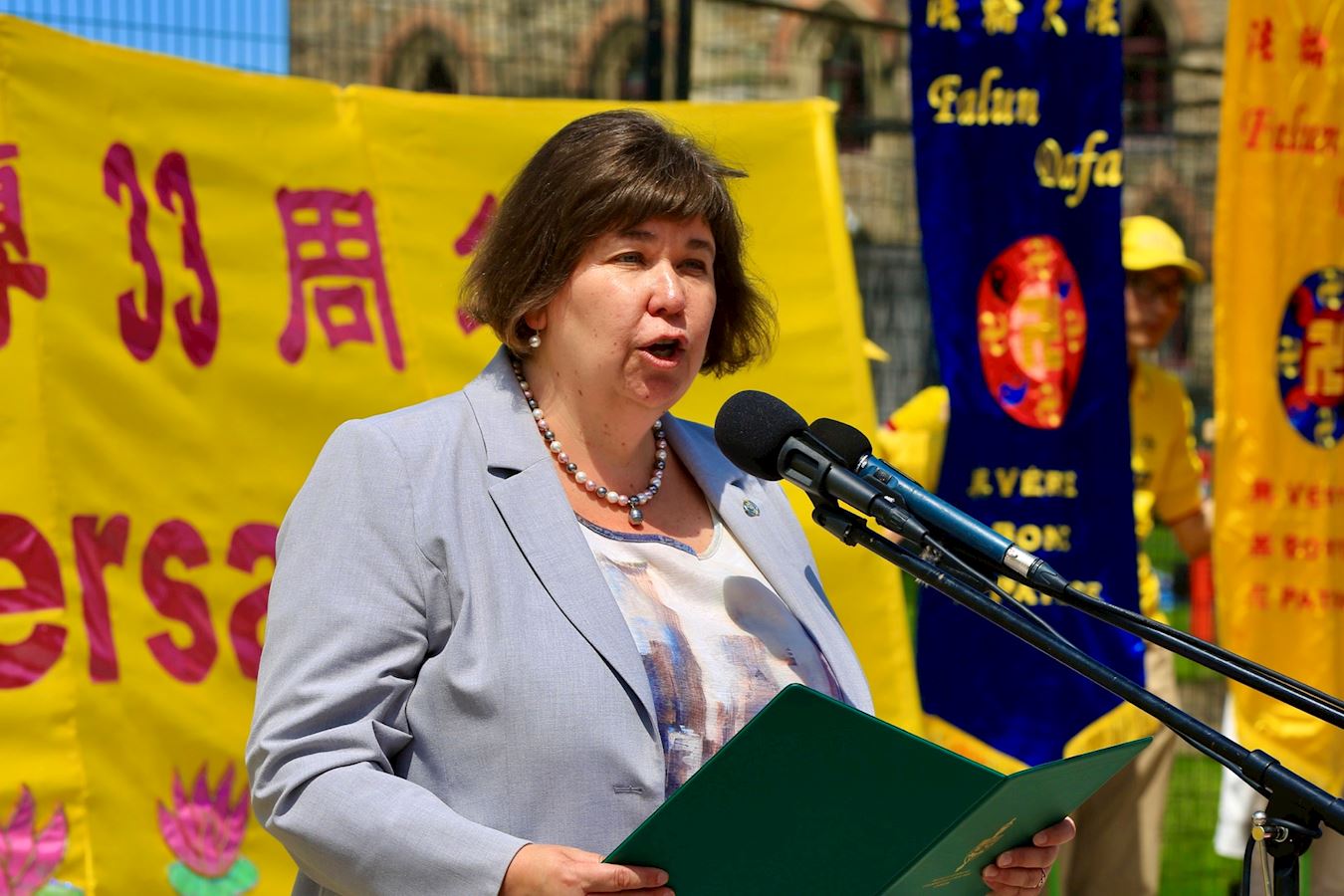 她感谢法轮功学员为加拿大社会做出的贡献,“法轮功以及你们参与的一切活动,都在为我们每个社区做出贡献,这不仅体现在你们的志愿服务、募捐以及你们在社区中的一切善举上,也体现在你们日常倡导的真善忍价值观上。”