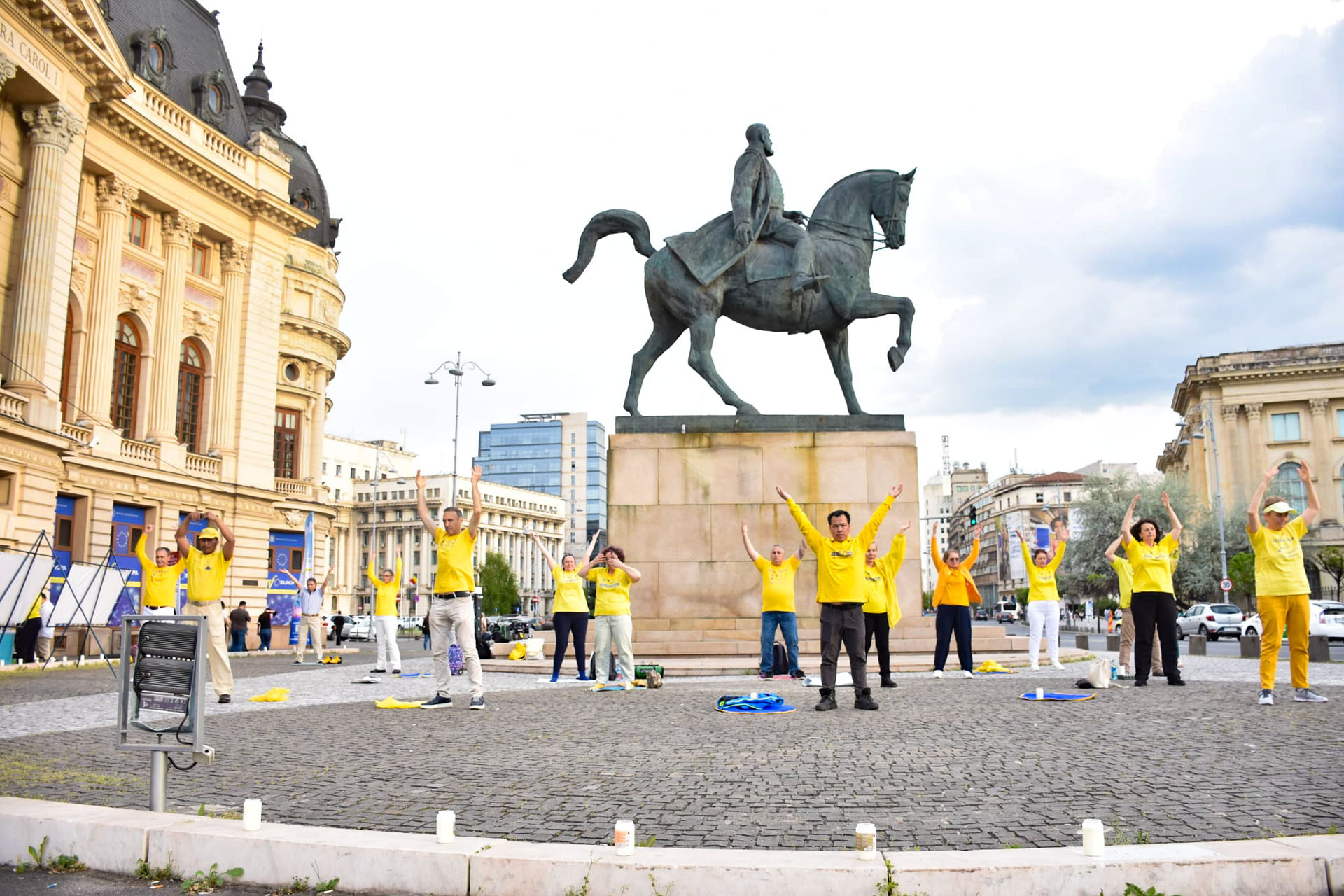 四月二十五日,法轮功学员在胜利大道(Calea Victoriei)的卡罗尔一世国王雕像旁设立真相展位;二十六日,他们在中共驻罗马尼亚大使馆前举行和平集会,要求立即停止迫害法轮功;二十六和二十七日上午,学员在米哈伊一世国王公园举行集体炼功和弘法活动。