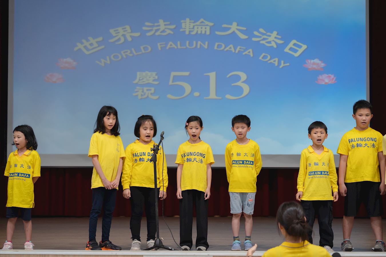 ![]() 图3:大法小弟子背诵《洪吟》、欢唱《法轮大法好》歌曲,以表达对师尊感恩之意。 |
