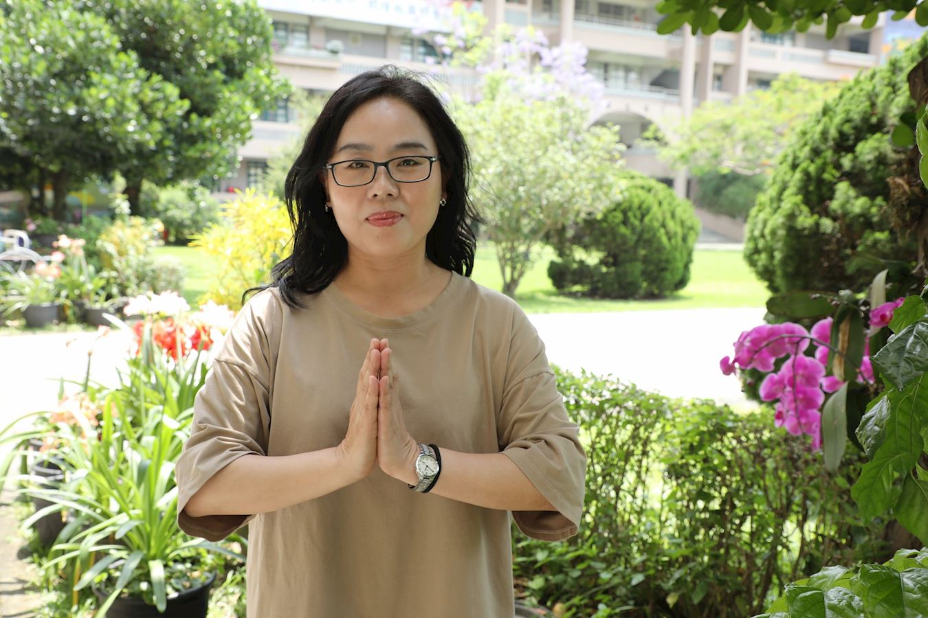 ![]() 图4:罗茜庭双手合十说:“会一直坚持善良与传统,坚修到底以谢师恩。” |