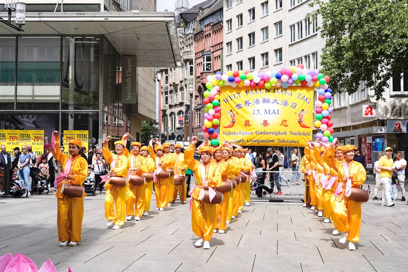 特别是今天,在这个特殊的日子里,您可以带着喜悦和自豪庆祝自己重要的节日:一个将法轮大法的美好和深邃内涵放在中心的日子。这是一个充满希望、人性光辉的日子,也提醒我们,即使在困境和压迫下,真理之光也不会熄灭。
