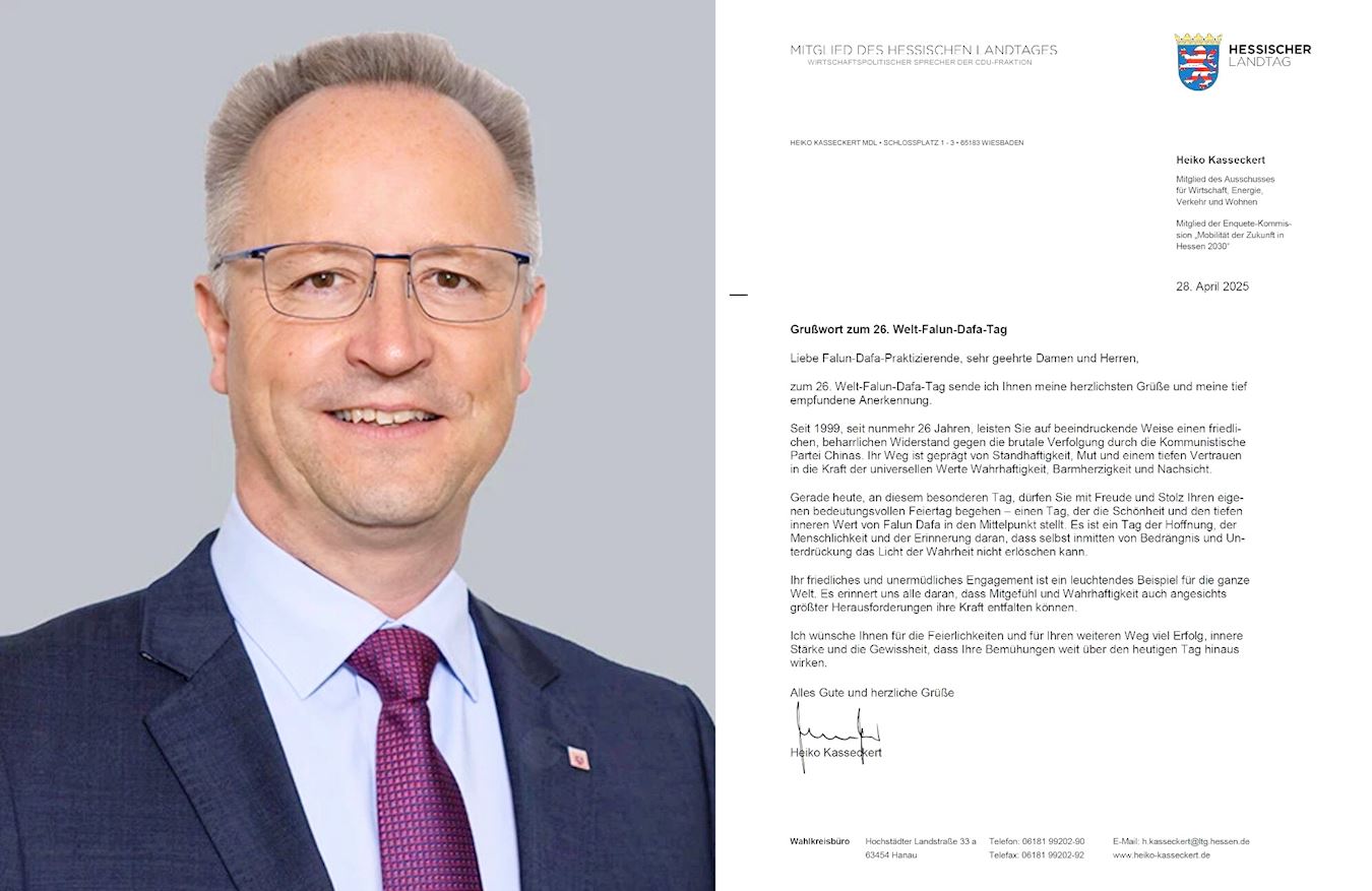 ![]() 图4:基民盟黑森州议会议员海科•卡塞克特(Heiko Kasseckert) 及贺信原文。 |