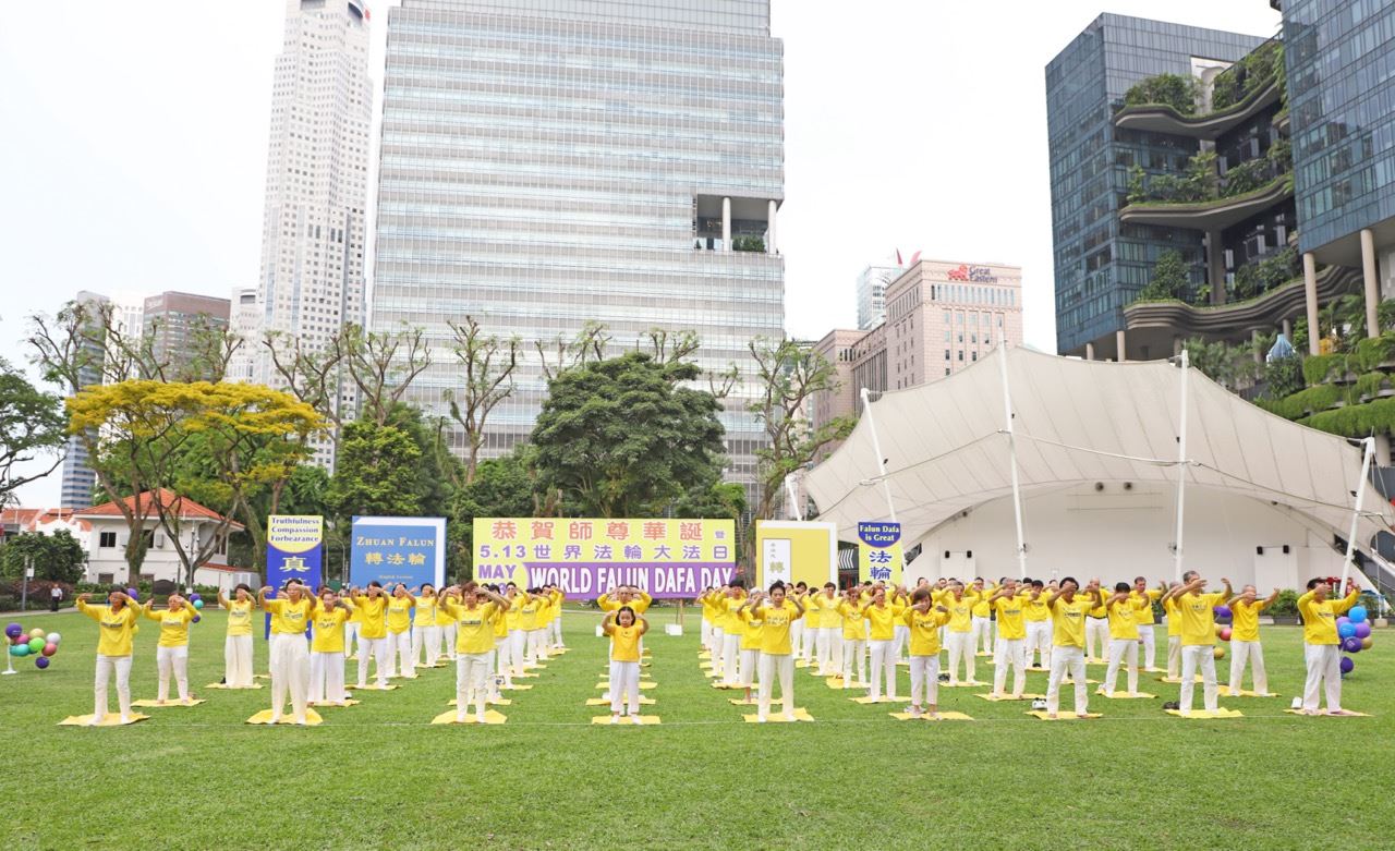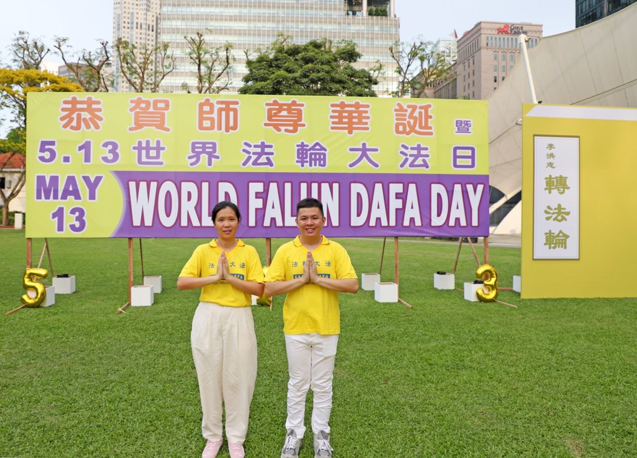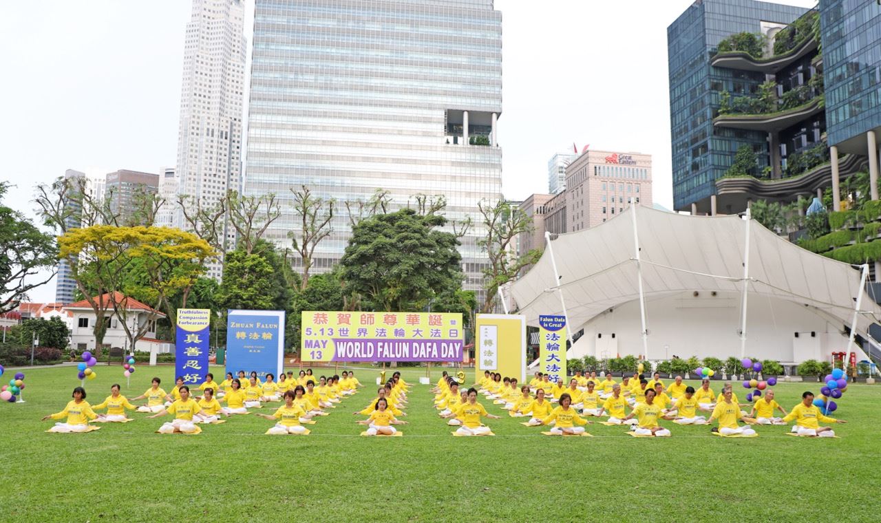 ![]() 图1:二零二五年五月六日下午,新加坡部分法轮功学员在芳林公园举办活动,庆祝法轮大法弘传世界三十三周年。图为学员们双手合十齐声恭祝师父生日快乐。 |