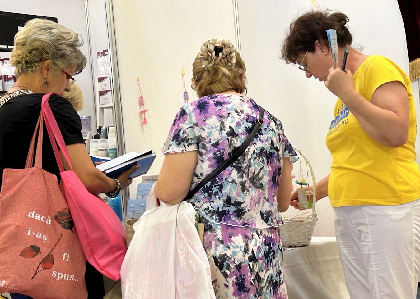 ![]() 图2~3:二零二五年六月六日至八日,在布加勒斯特皇宫大厅,人们对法轮大法书籍感兴趣。 |