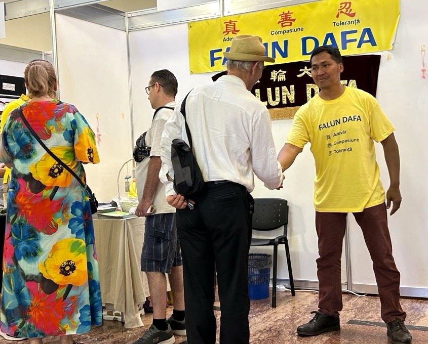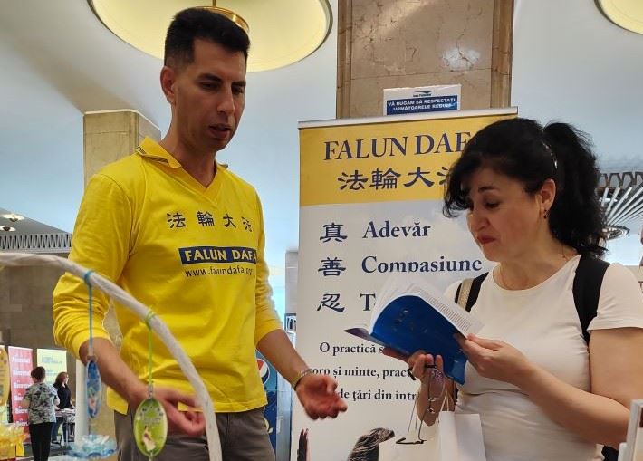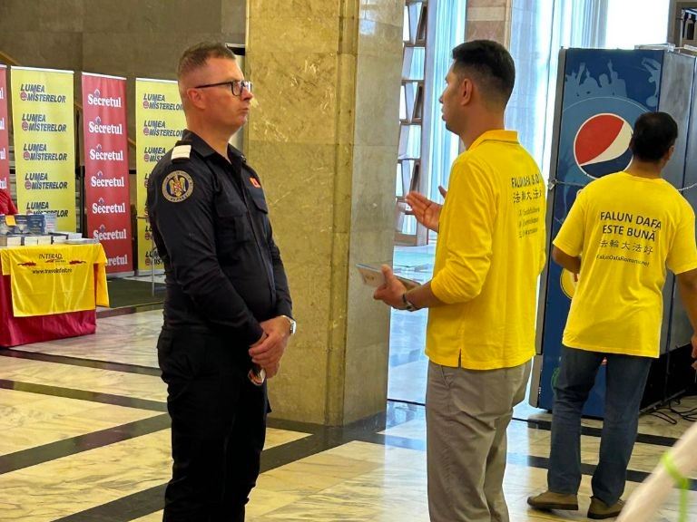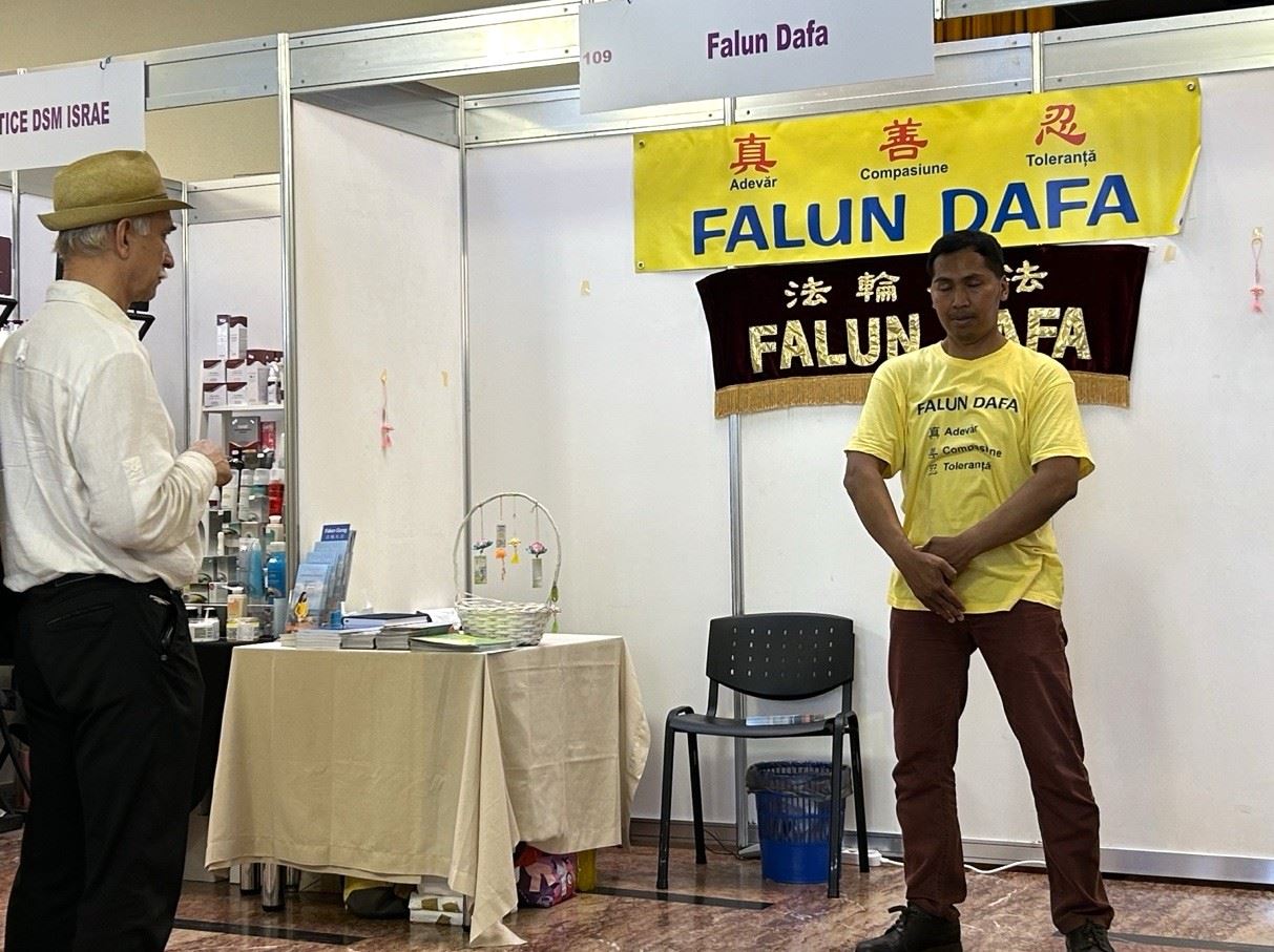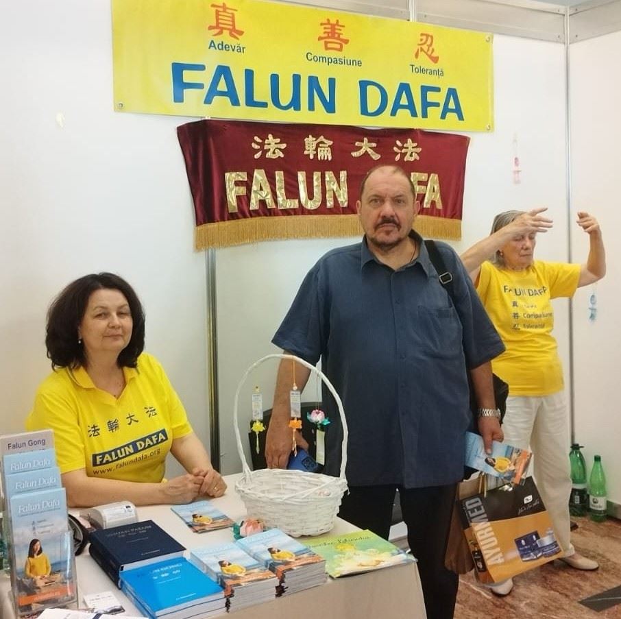 科德林(Codrin )说,几年前他在博托沙尼的一次讲座上接触了大法,也学过功法,但并没有认真修炼。这次他想买一本法轮大法修炼入门书籍《法轮功》。