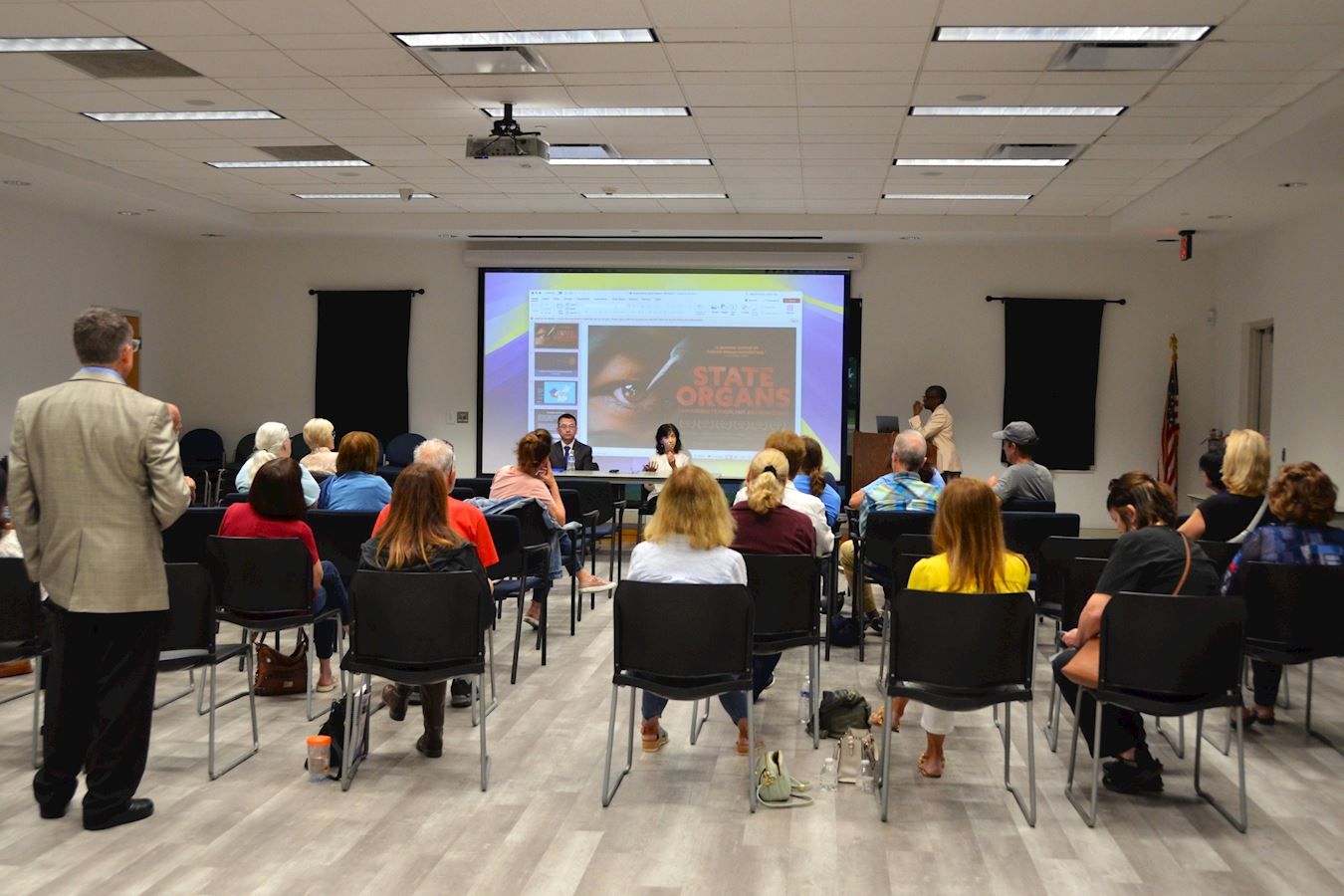 ![]() 图1:二零二五年六月十日,宾州北安普敦市(Northampton)自由图书馆举办纪录片《国有器官》(State Organs)放映会。 |
