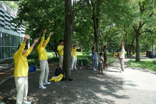音乐家法里德·巴伦(Farid Barron)路过图书馆时,立即被法轮功学员祥和的炼功场所吸引,并立即学炼了起来。学炼了半个多小时后,巴伦说:“我感觉精力充沛,内心平静,非常平和。有几次我们保持(抱轮)姿势,风吹过,感觉很棒。感觉就象与自然谐和相处。就象大自然在说‘干得好’。” 巴伦主弹钢琴,在世界各地巡回演奏爵士乐,曾在纽约林肯中心爵士乐团、茱莉亚音乐学院工作过。