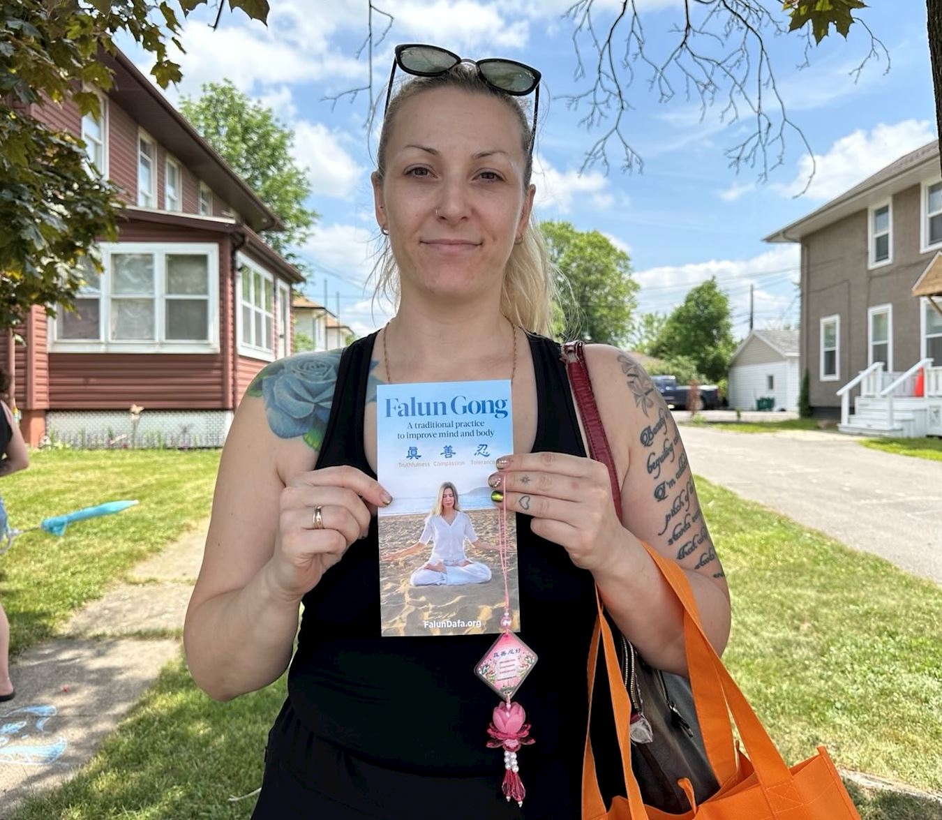 学员向塔拉介绍,天国乐团是由法轮功学员的。在了解到法轮功是佛家修炼功法时,塔拉分享了自己曾接触过佛家的思想,并表示对法轮功的兴趣。于是学员介绍了免费的线上学功班,塔拉表示自己回家后,就去了解更多。