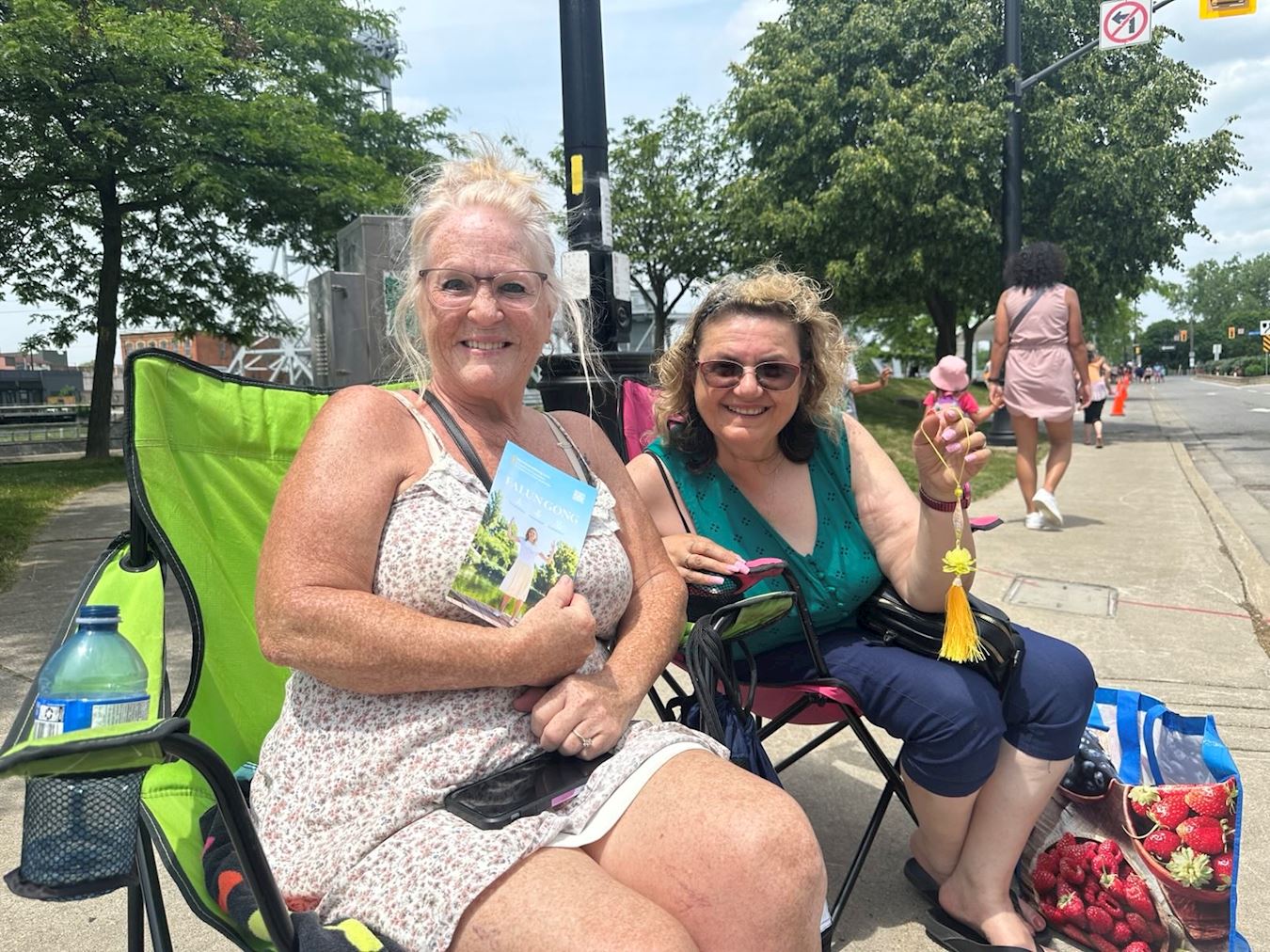 学员感谢凯瑟琳的称赞,并提到乐团成员都是修炼法轮大法的,还介绍了法轮大法的基本信息以及真、善、忍的理念。凯瑟琳对此表示认可,并说:“这是非常和平的价值观,也是人们本来就应该遵循的。我认为生命是宝贵的,因此人们应利用好在活着的时候,去接触美好的事物,去善待他人。”她还表示自己会带着传单回家并告诉亲友,而且要了解更多。