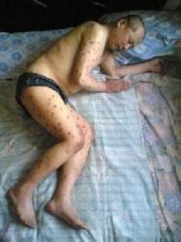 ![]() 潘本余生前照片 | ![]() 身体多处有烟头烫伤和疥疮的痕迹 |
