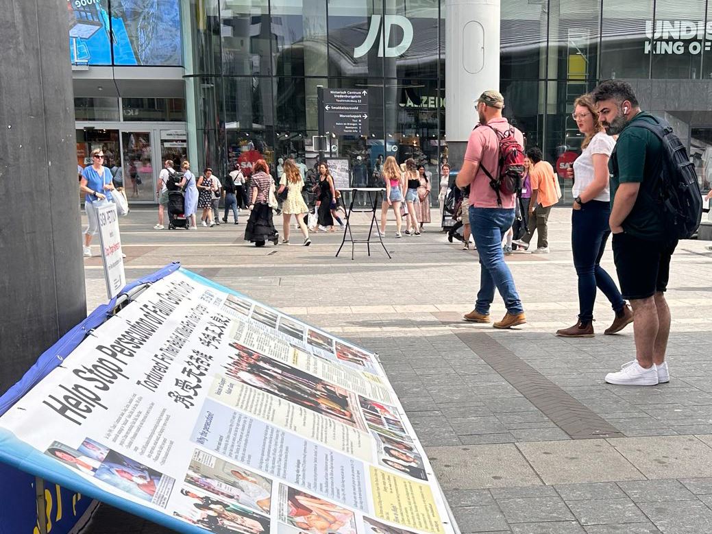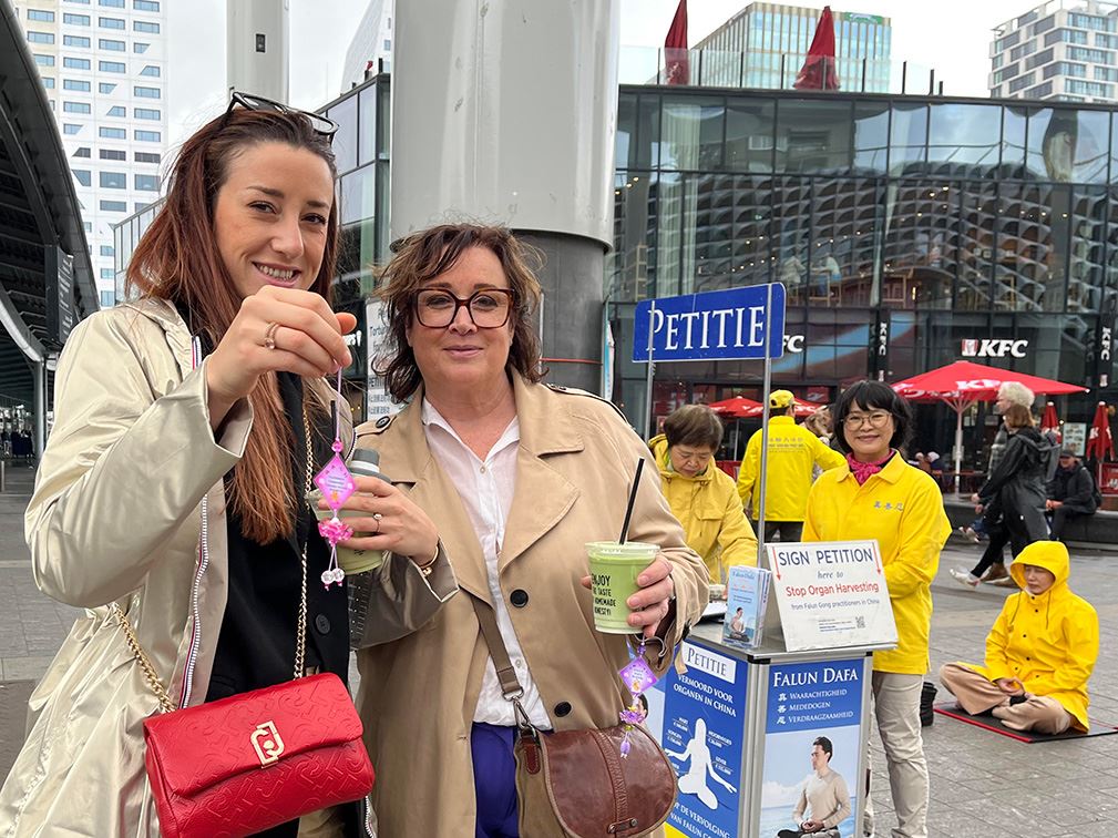 他们说:“我们觉得这是非常悲惨和可怕的!希望更多的人知道在中国发生的事,他们(中共)应该停止。人们应该享有自由。在荷兰,我们享有这种(信仰的)自由,但在中国,法轮功学员因此被杀害。”