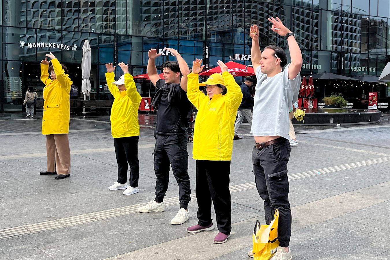 两名年轻男士与学员一起炼了第二套功法“法轮桩法”,他们希望能够为学员提供帮助,早日让迫害停止。两人都签署了请愿书,其中一位说:“我爱你们做的事情!”
