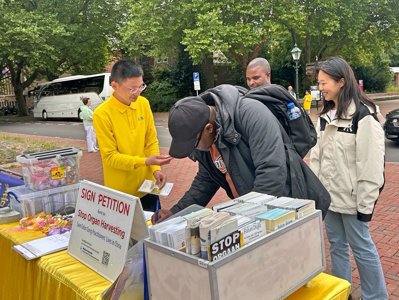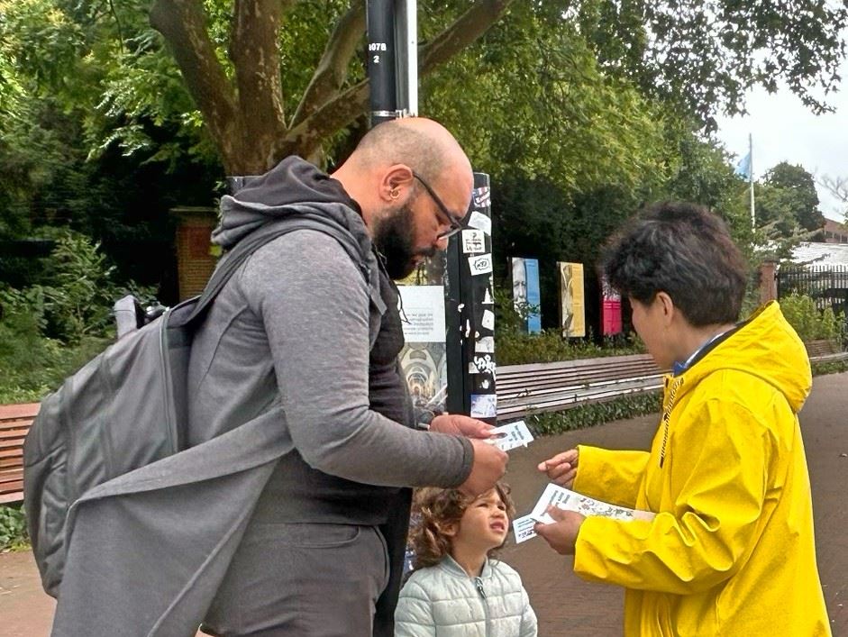 从波兰来的达米安(Damian)是一个自然保护者,经常在世界各地旅游。在阅读了真相展板上的内容后,他对学员说:“我去过很多国家旅游,日本、泰国,我也去过中国,我听说过活摘器官的事情,这太罪恶了,必须制止、制止、制止(stop,stop,stop)!”