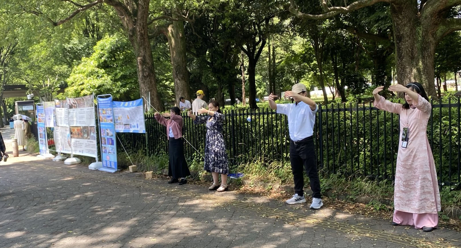 ![]() 图1:法轮功学员在代代木公园讲真相 |