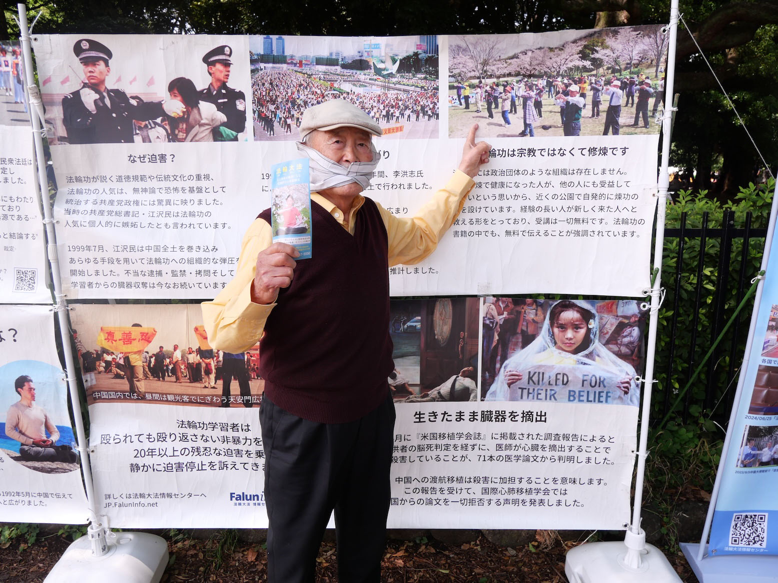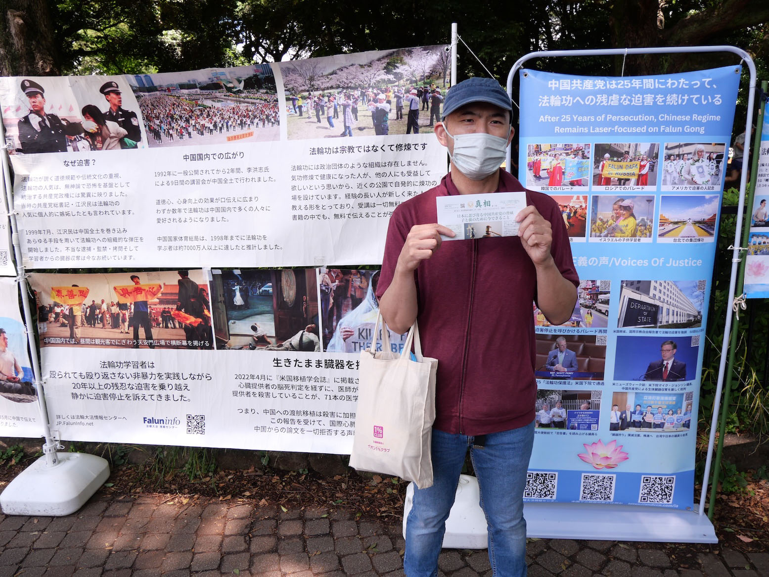 学过中文的竹内先生表示,知道法轮功学员在遭受惨无人道的迫害并表示同情。