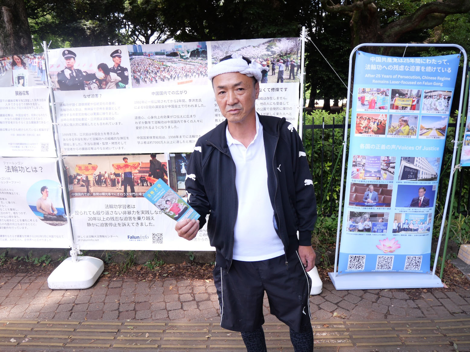 为了买书而路过代代木公园的玉川先生表示:“我认为应该对遭遇中共人权迫害的人们发声。”