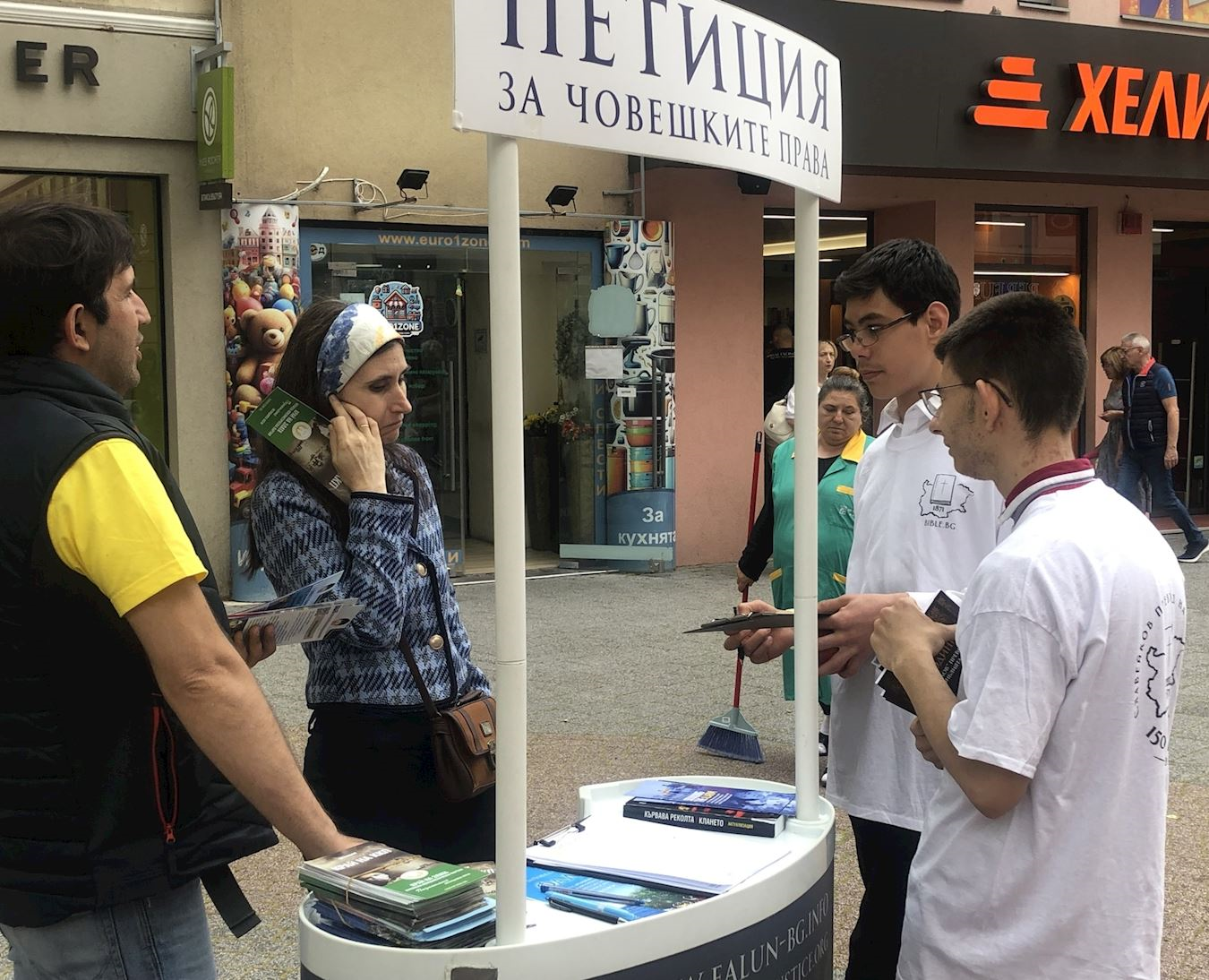 二零二五年五月二十四日,保加利亚法轮功学员在普罗夫迪夫(Plovdiv)中心举行了信息日活动,他们向民众分发传单,展示大法修炼的美好,并征集签名要求中共停止迫害。许多保加利亚人得知中共残酷迫害的真相后感到震惊,纷纷表达对法轮功的支持。