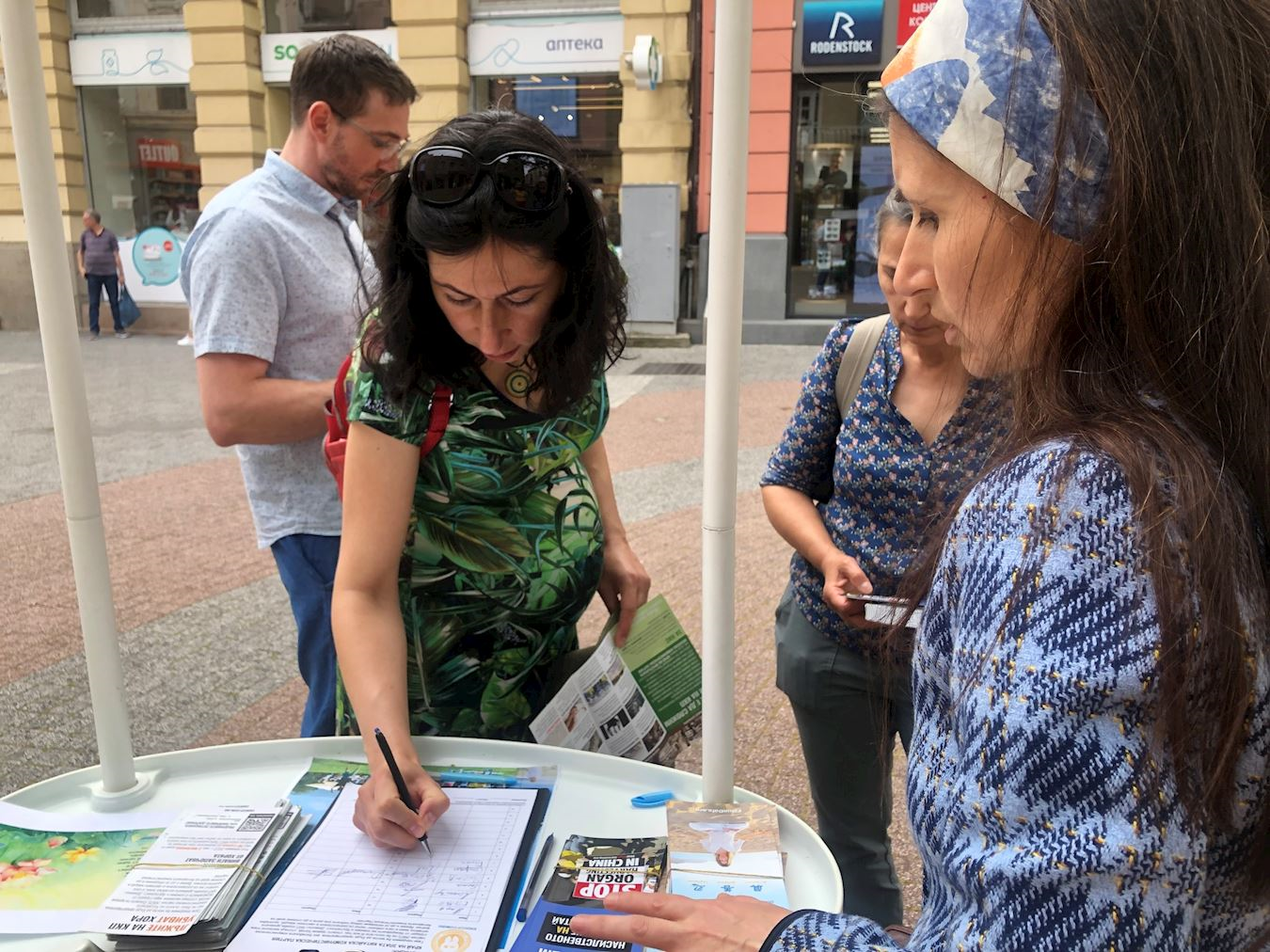 甘卡(Ganka)和埃米尔(Emil)是一对准父母,他们非常认真的听学员介绍法轮功真相,埃米尔说:“我想签署请愿书,因为我完全反对中共对无辜人民犯下的邪恶罪行!”