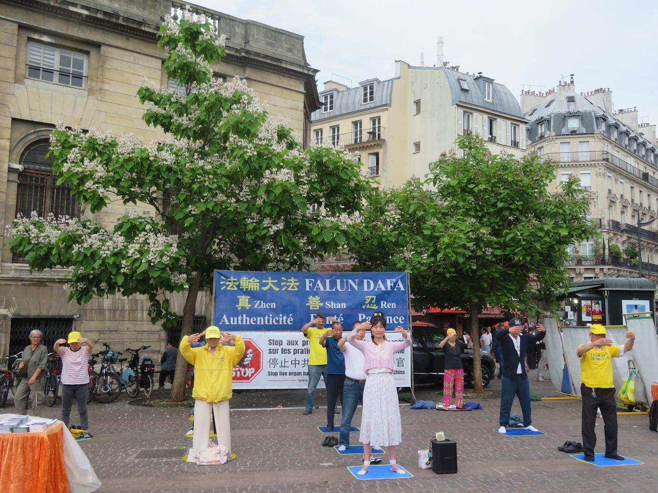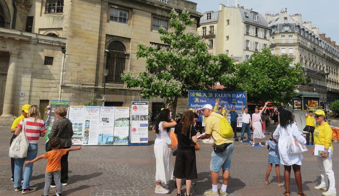 ![]() 图1~2:二零二五年五月三十一日,法轮功学员在夏特莱街区向人们介绍法轮功,揭露中共对法轮功学员的迫害。 |
