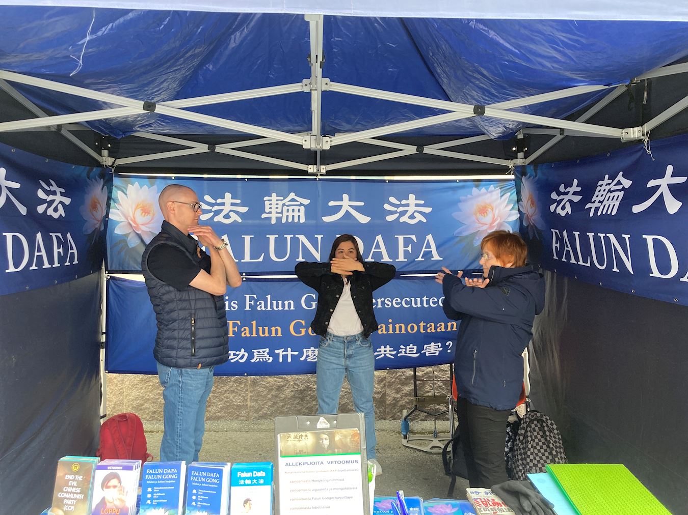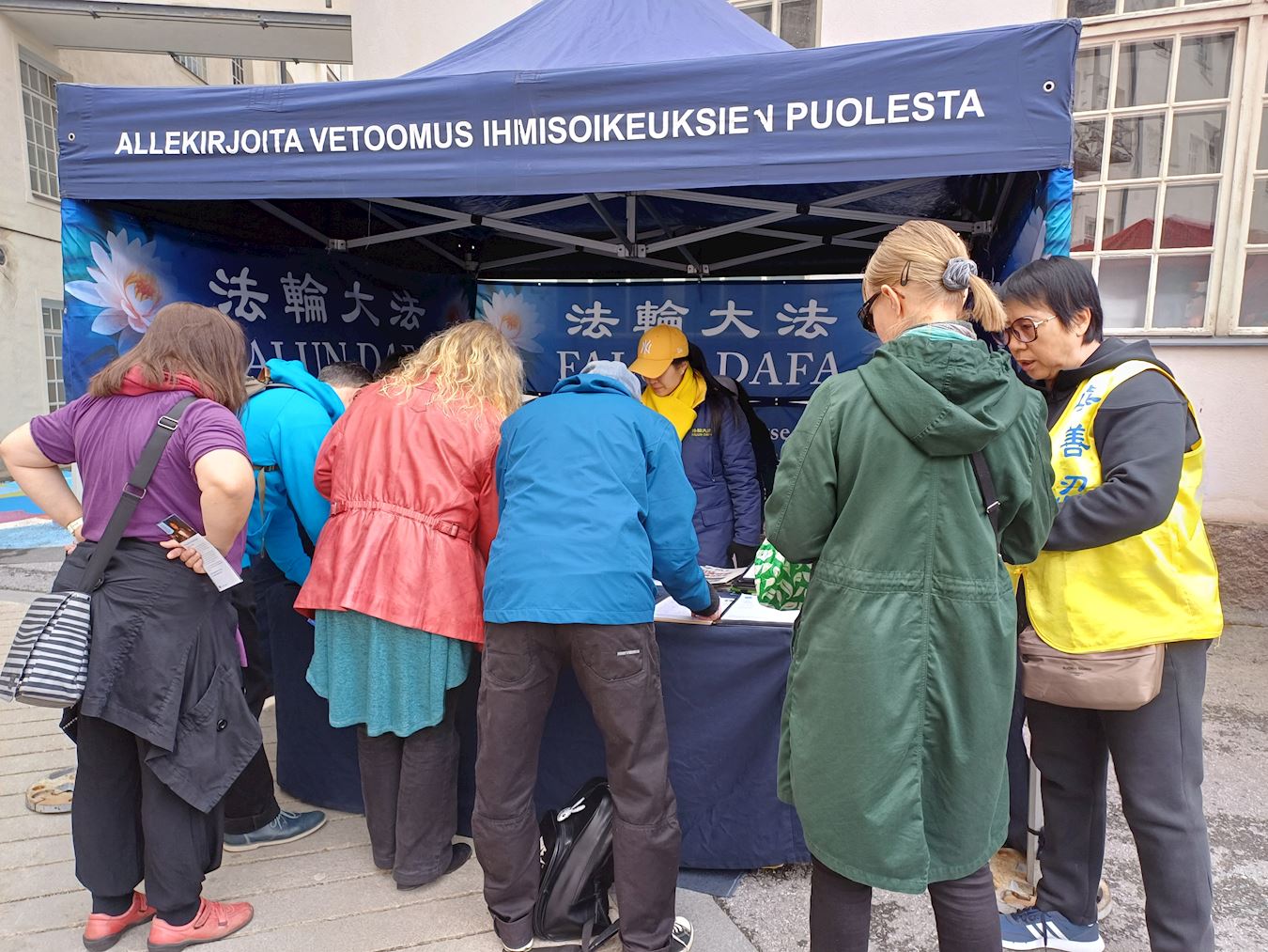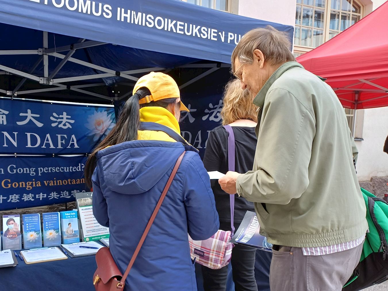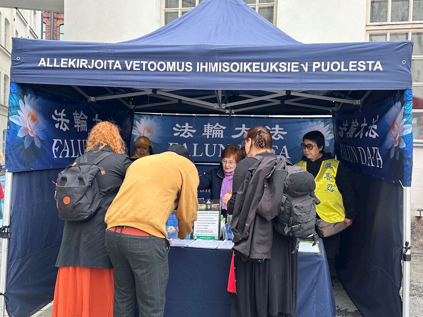 芬兰法轮功学员也参加此次活动,发放法轮大法的介绍资料,并征集签名,呼吁更多民众了解中共迫害法轮功的真相。醒目的信息台吸引了众多过往的民众,纷纷驻足上前了解情况。