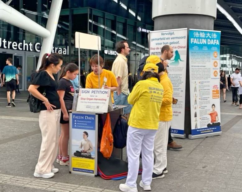 ![]() 图1~2:二零二五年六月二十二日,荷兰法轮功学员在乌得勒支(Utrecht)中央火车站附近举办活动,许多经过活动现场的路人来了解真相,并在请愿书上签名。 |