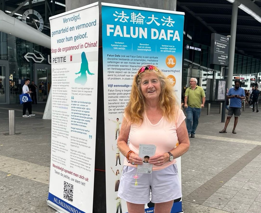 来自海牙的退休英语老师克丽娜·范·贝尔森分享了她对精神信仰自由重要性的看法。她说:“我在新闻里读到过有关法轮功的报道。我自己也练佛家的打坐。我们知道法轮功在中国被禁止,因为共产主义是反精神信仰的。对我来说,人们能自由地信仰宗教、自由思考、自由地修炼法轮功,这非常重要。不是只有金钱、变得富有和有权才重要——那种观念太糟糕了。在中国,基督教和佛教也面临很多困难。你只有在和中国政府签协议、表示支持共产主义后,才被允许行使信仰。那真的太糟糕了。”