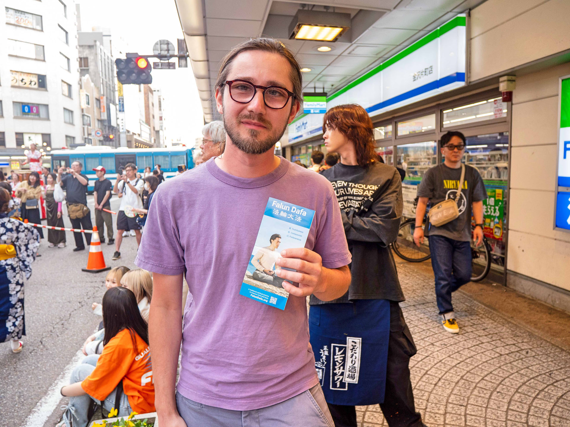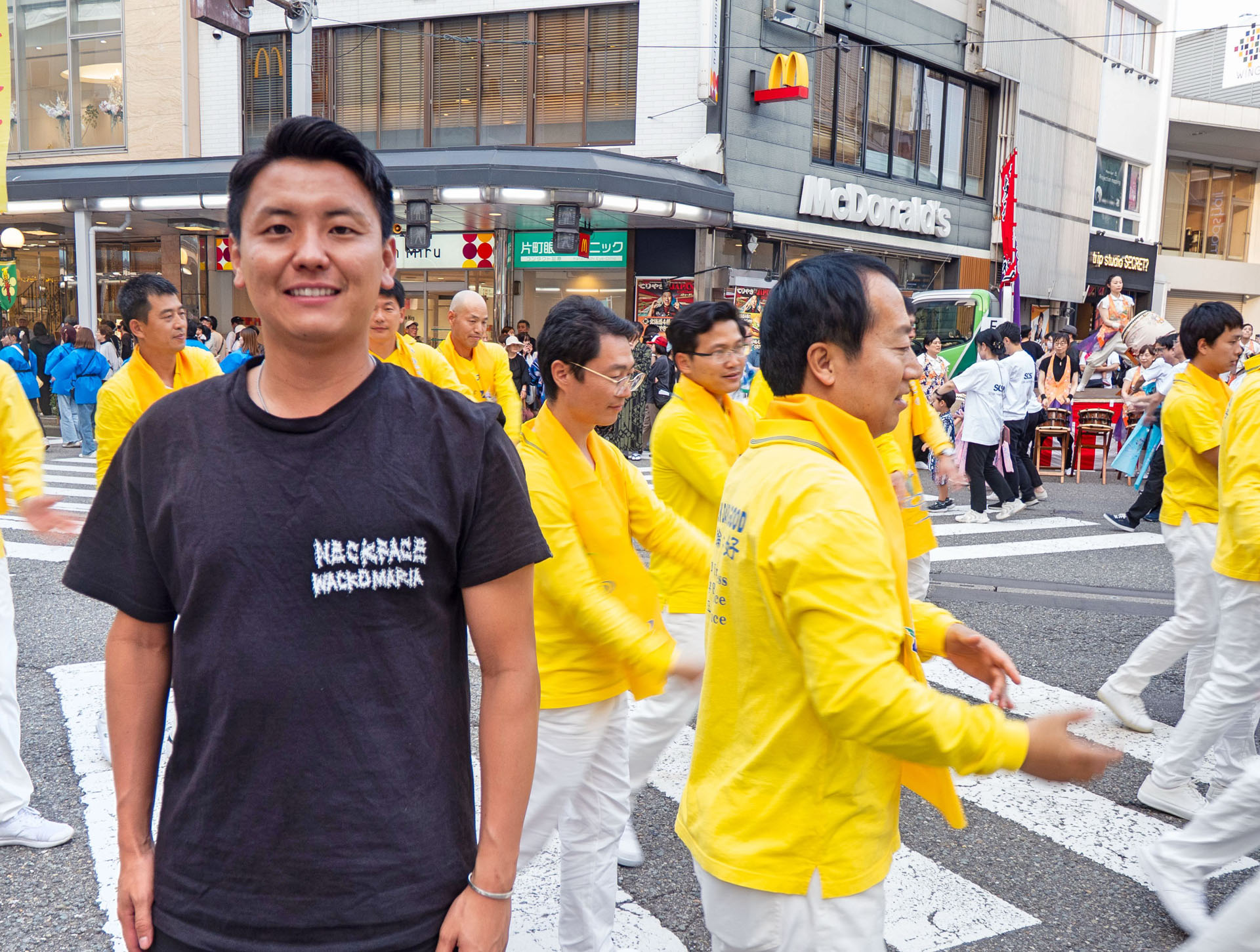 从广岛前来观赏百万石庆典的久保田先生表示:“第一次这么近距离地观看表演,(法轮功学员)动作干净有力,非常好,有这样的庆典活动真是太棒了。”