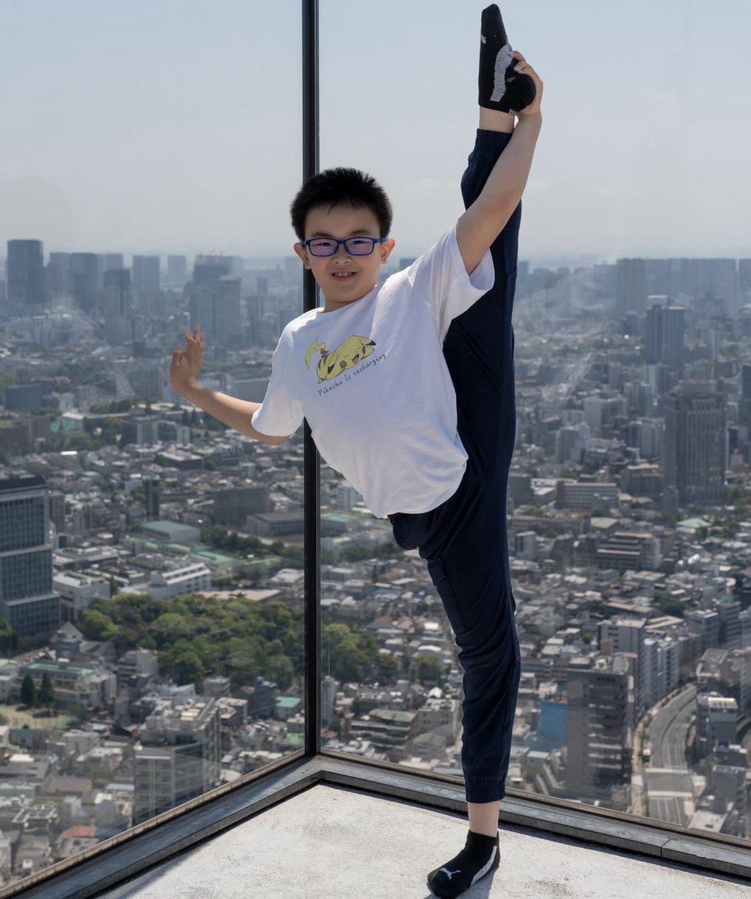 习舞时,子翔还要练习弹跳。他说:“一开始,我跳一下都觉得费劲,跳十下就跳不动了。我想起滴水穿石的故事,所以每天都坚持练习。我从能跳三百个,增加到六百个,现在我能轻松跳一千个了。过程中,我有想要偷懒和放弃的时候,但我还是坚持下来了,因为我的理想是去神韵跳舞。”