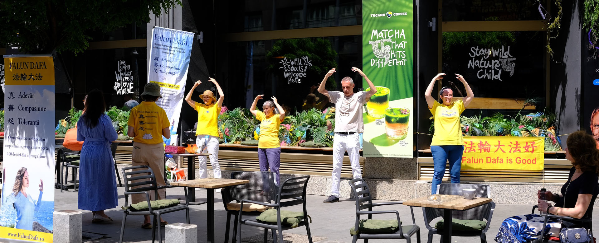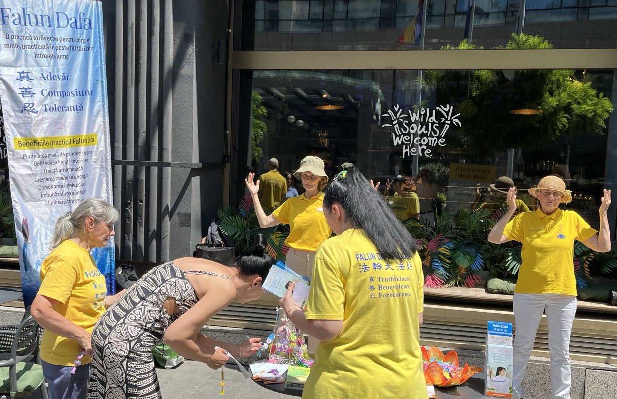 六月二十二日,在布加勒斯特的活动上,一位女士对法轮功很感兴趣,她说:“我很久以前就了解过这个功法,被真、善、忍的道德价值观所吸引,(法轮功)帮助人们变得更好,我早就想学了,但一直都没能实现(这个愿望)。”她向学员询问了相关信息以及布加勒斯特炼功点的信息。