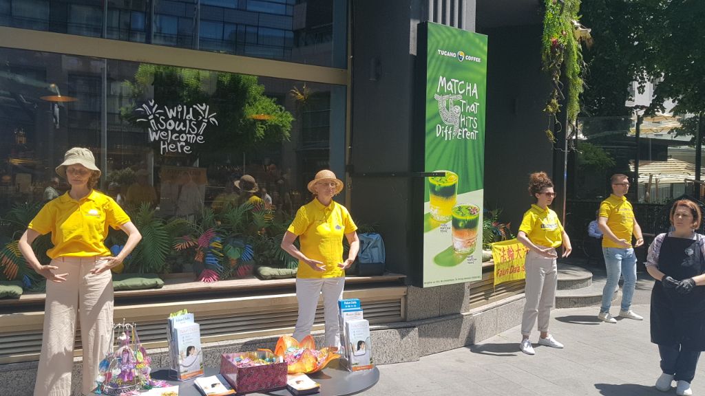信息日当天,路过此处的市民饶有兴趣的观看功法展示,聆听大法音乐,还向学员询问法轮大法的真相。活动原计划持续两个小时,但由于对法轮功感兴趣的人很多,学员们将时间又延长了两小时。