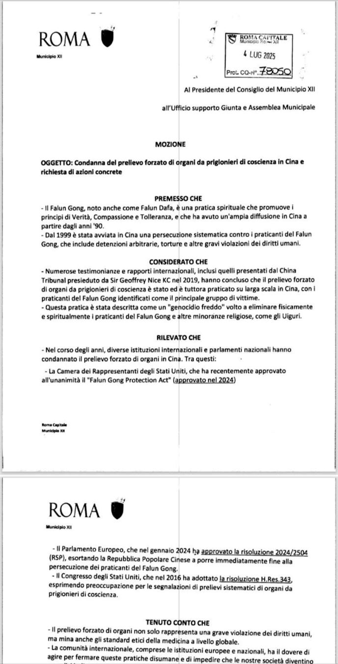 ![]() 图5:已向罗马市政府提交的“制止迫害法轮功”的动议原件 |