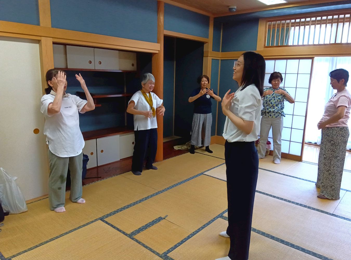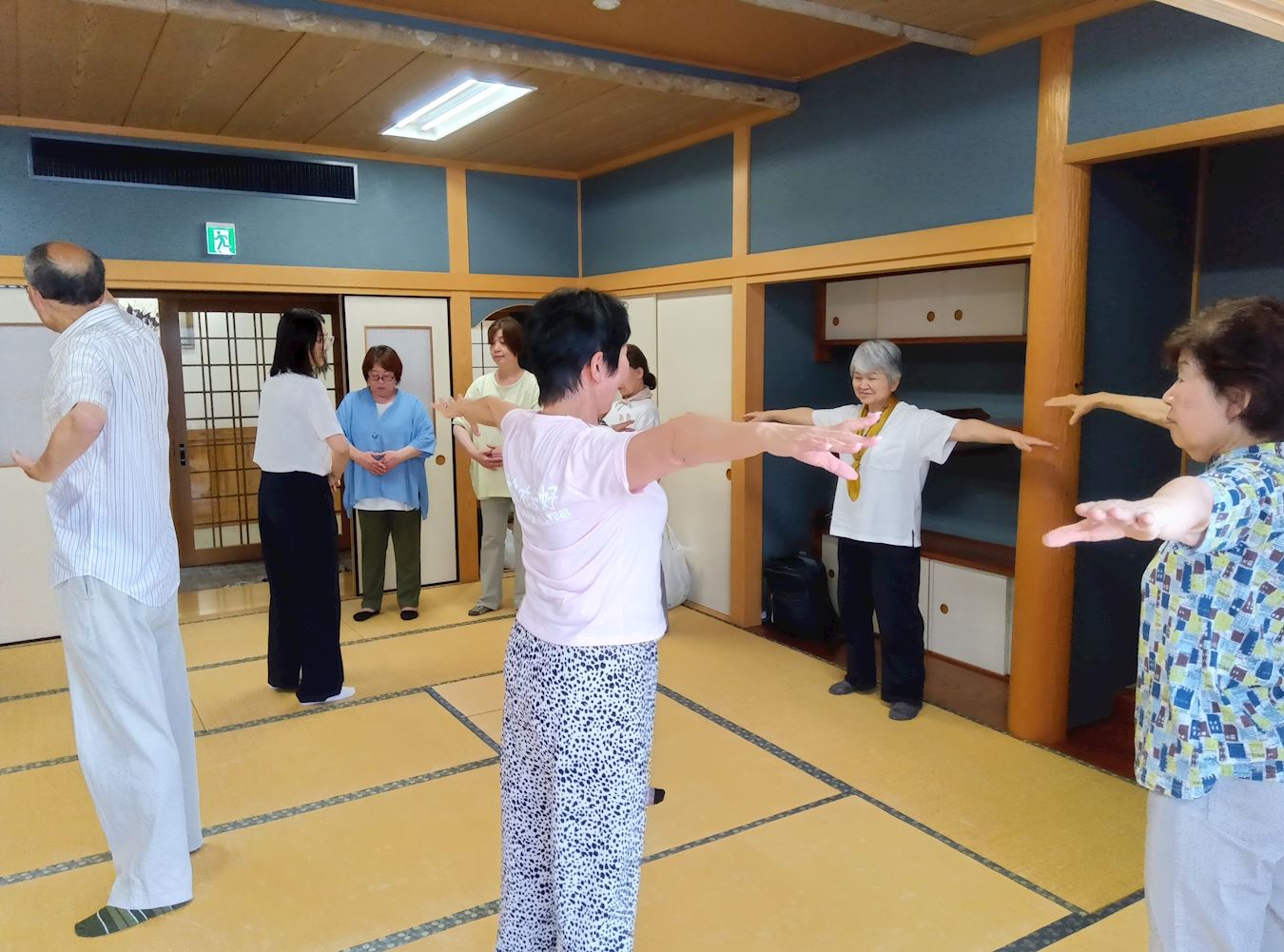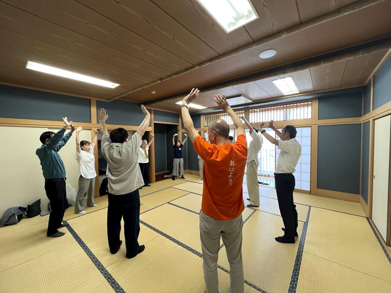 吃完饺子后,一些对健身有兴趣的人又一起学炼了法轮功的第五套功法。法轮功学员先用日语简单地讲解了功法原理和一些动作要点。大家学得很认真。并表示炼完后感觉身体很轻松。
