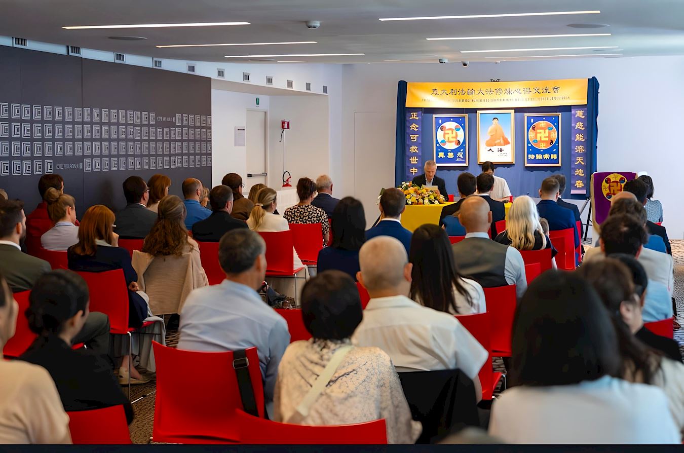![]() 图1:二零二五年七月六日,意大利法轮大法修炼心得交流会在首都罗马举行。图为法会现场。 |